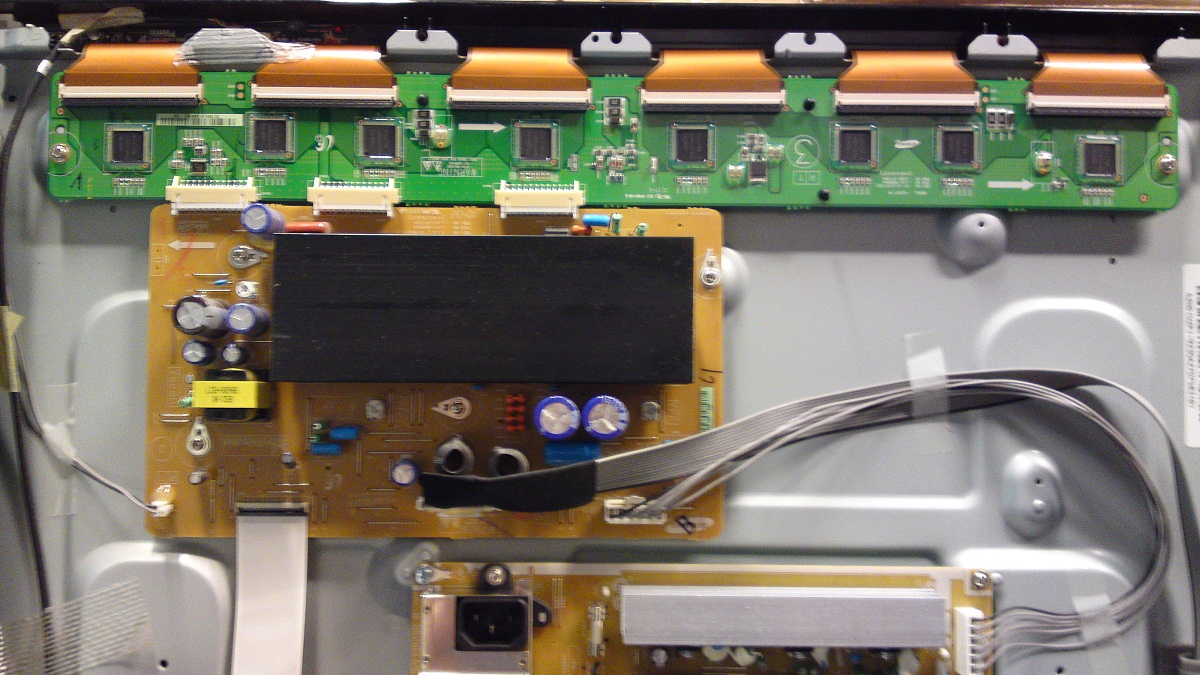 Man, I must say they have begun to get things down in size in those new plasmas. The powersupply is a tiny little thing, very compact, the Y and Z-SUS boards are also very small aswell, very neat. The logic boards looks like a small T-Con board in a LCD. This unit has 600Hz field scan rate aswell.