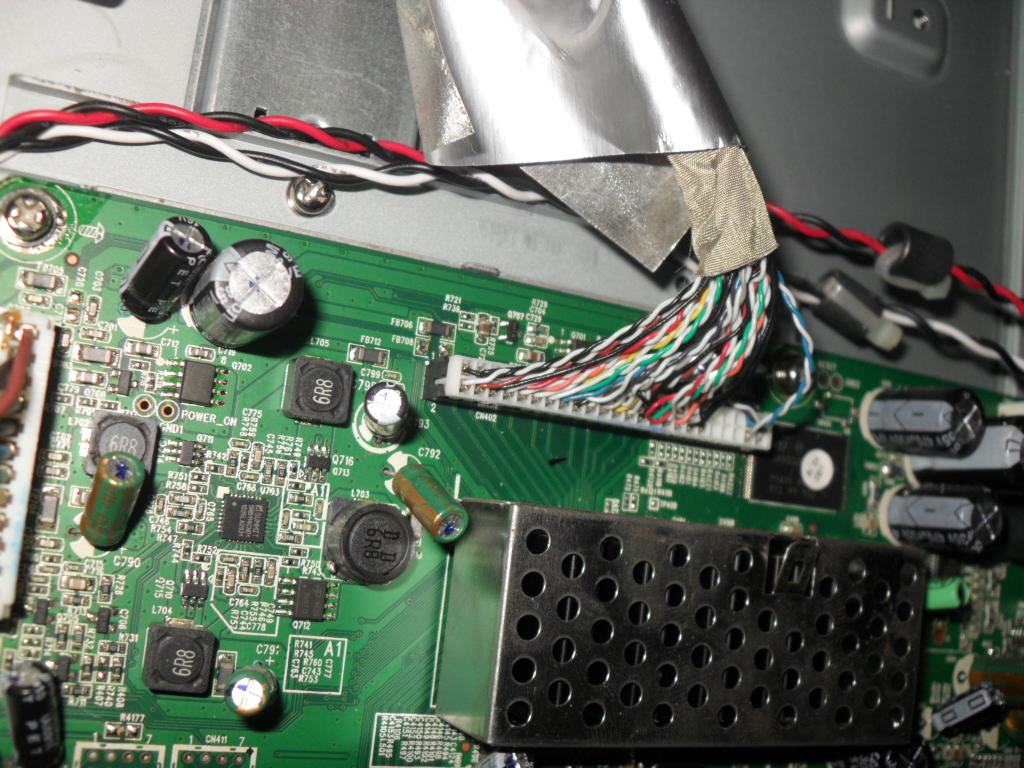 I opened up the tv today, started unplugging and replugging some stuff, because somewhere on google someone said something about a loose plug. . . AND IT WORKED AGAIN!. . . but I tried to turn it off and on to see if it was a permanent, and nope. Wiggling a specific plug around, would get this one board on the top to light up a blue LED, etc.