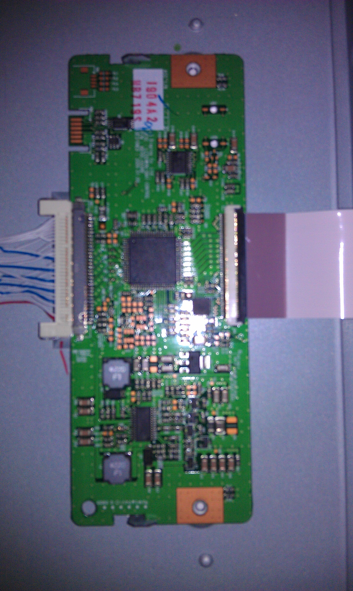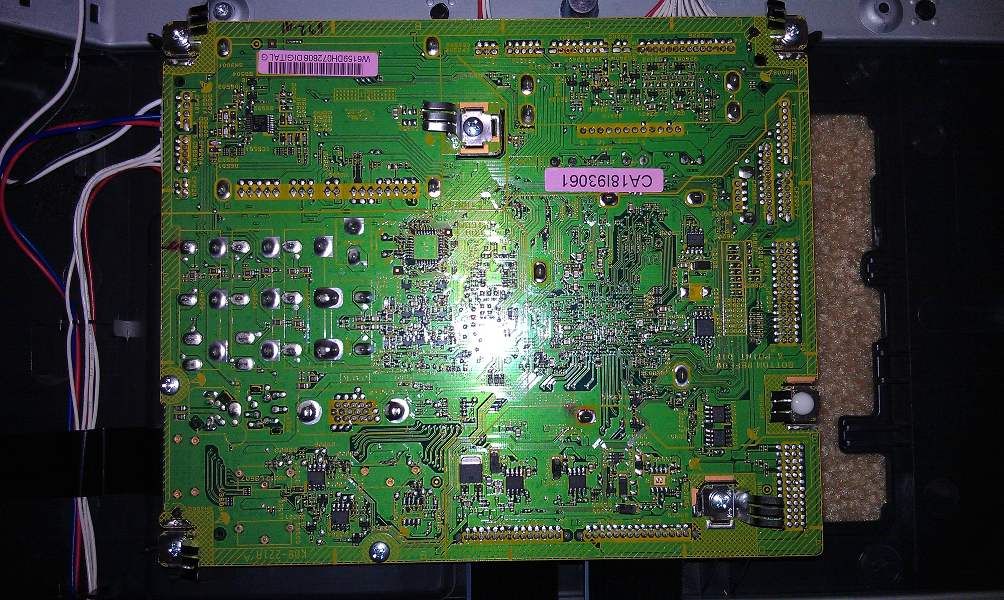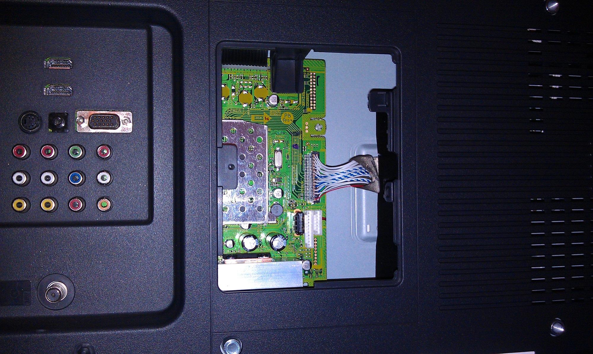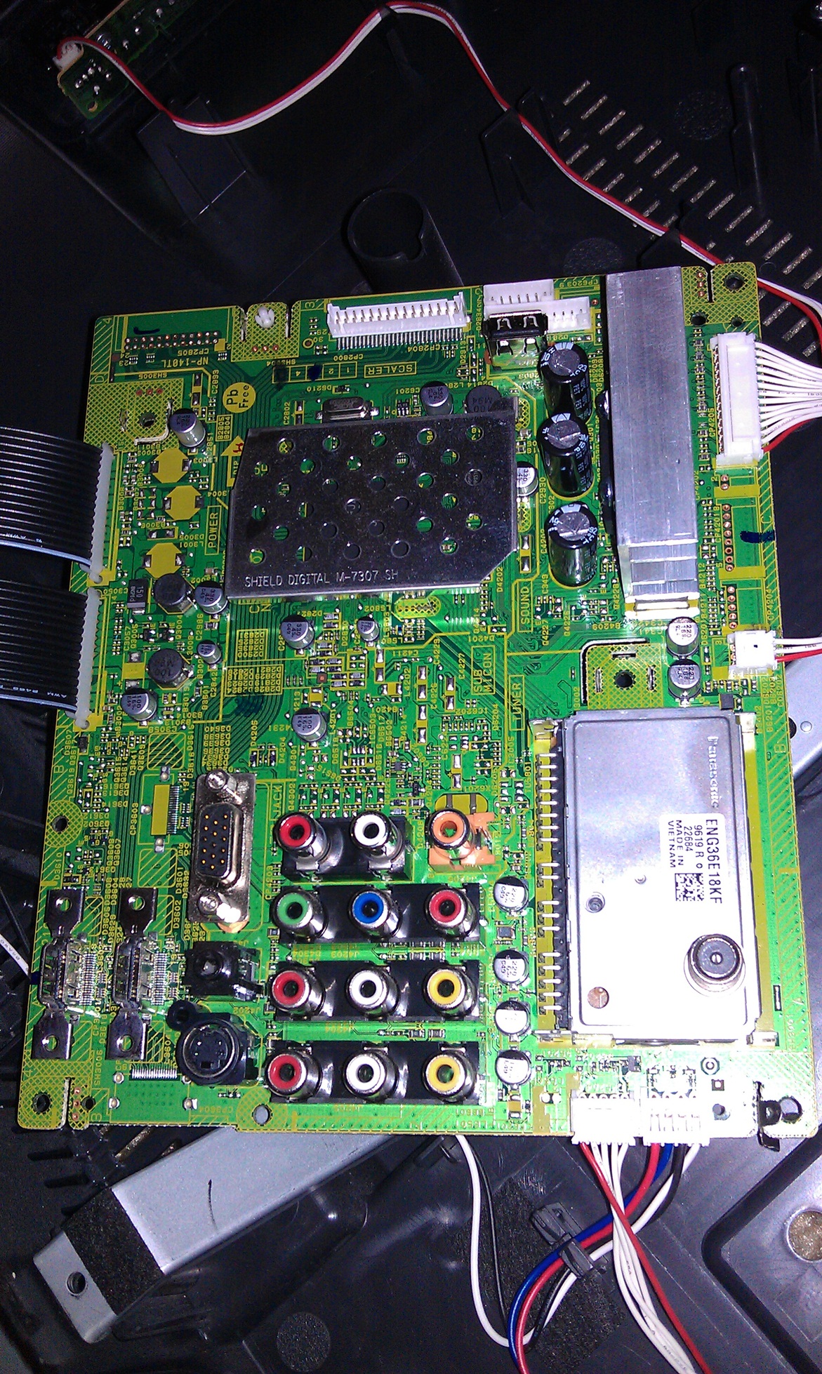 I would like two additional pictures. One is of the back of the TV with all the boards in their proper position, and all cables at least laying on their connectors. That will help me get an idea of the layout and signal flow.