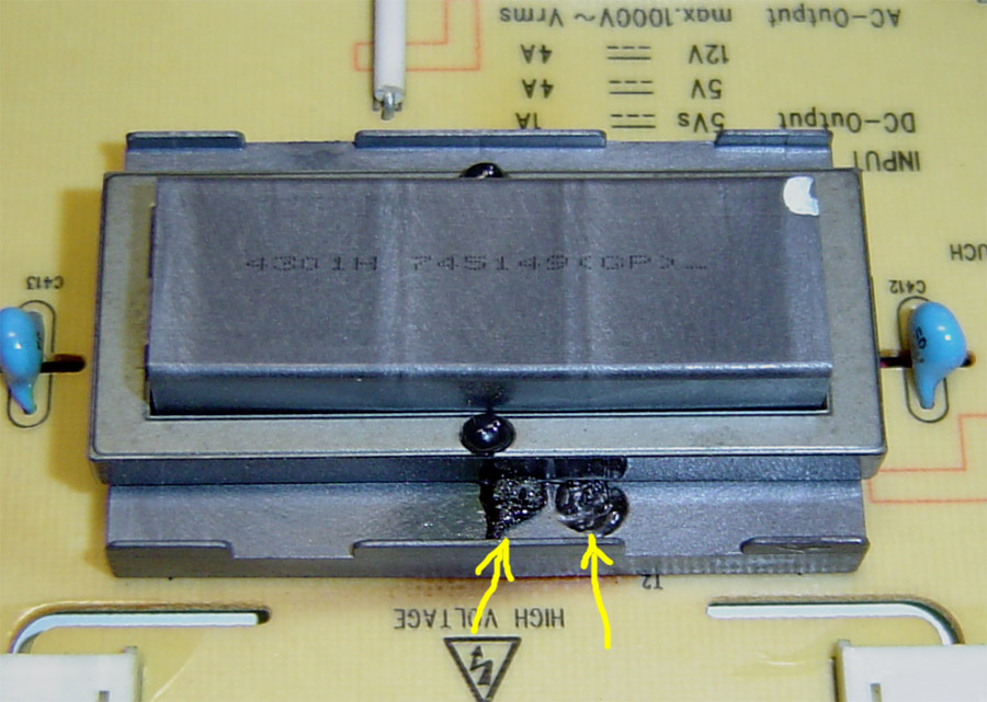 What is unusual is that after replacing the bad components the TV still won't work. When I turn it on it shows the logo then goes black, then, if I leave it on the picture will show up for a second, then goes black again.