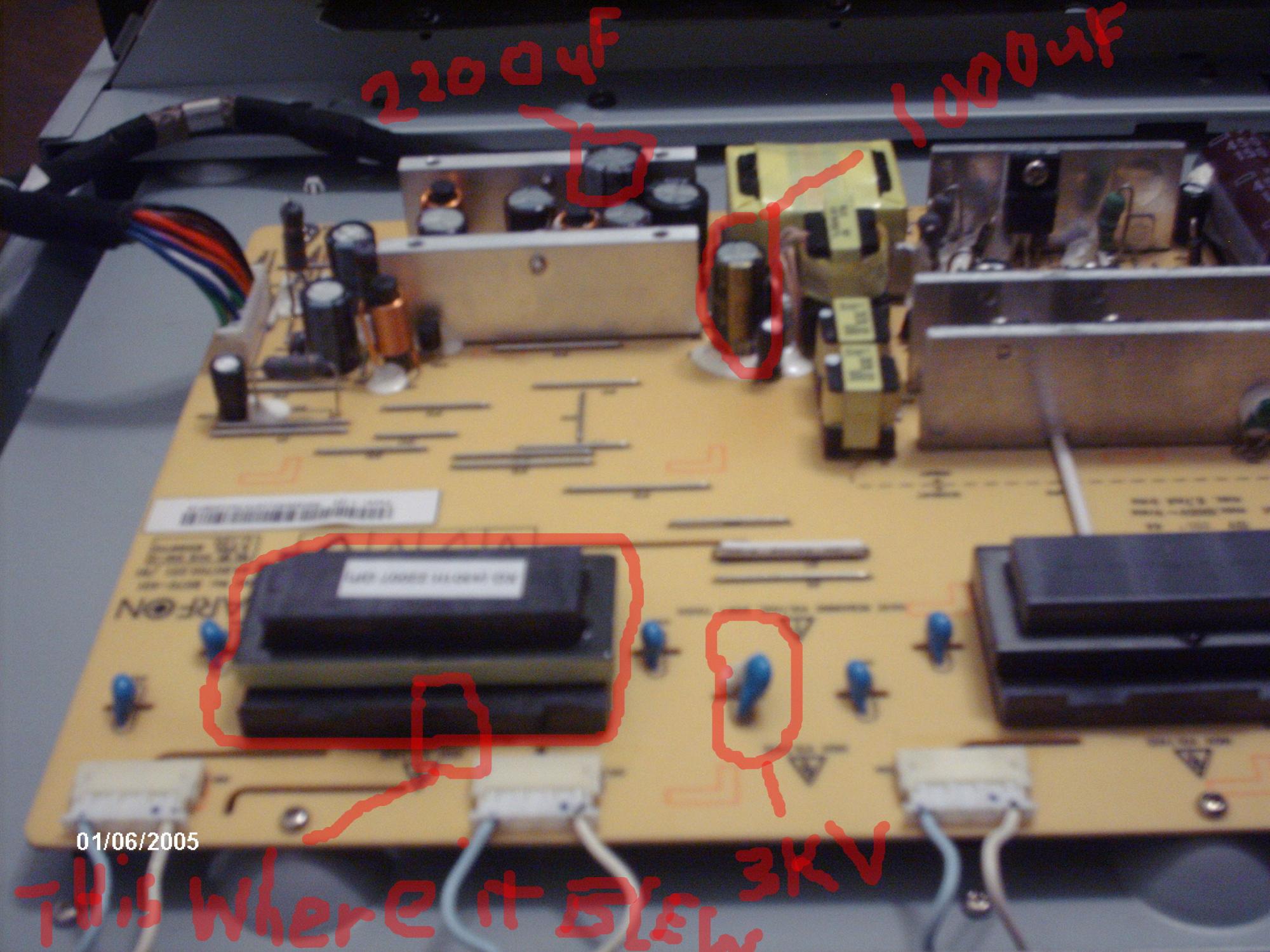 I have been working on a 32" Westinghouse TV and so far I have replaced the inverter transformer and some of the badcaps that I found.