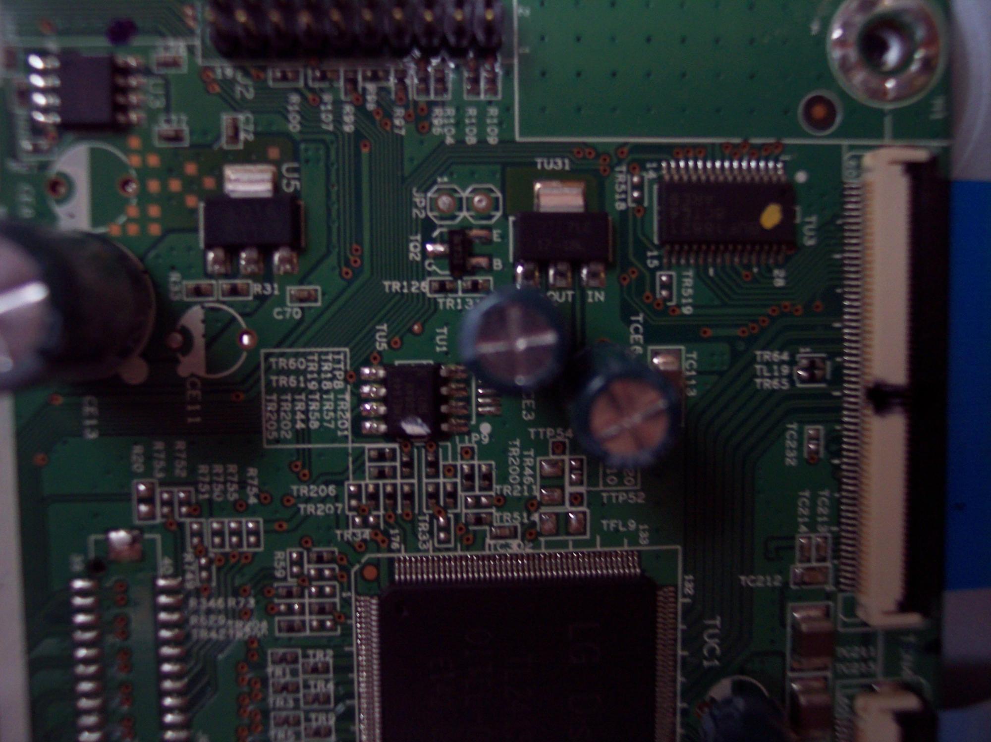 Here is the TU31 area on the board. From right to left, the leads read IN, OUT, and there is nothing written on the board to the far left lead. I moved the capacitor in the 2nd pic, it is fuzzy, but the only thing you can see is the circle on the board where the capacitor is. Hope this helps. Another thing, I'm not exactly sure where to measure the voltage coming from the power supply to the main board. Is there one spot I could measure, at the main board, to tell if enough power is coming from the supply board. Pics are attached Thanks again!