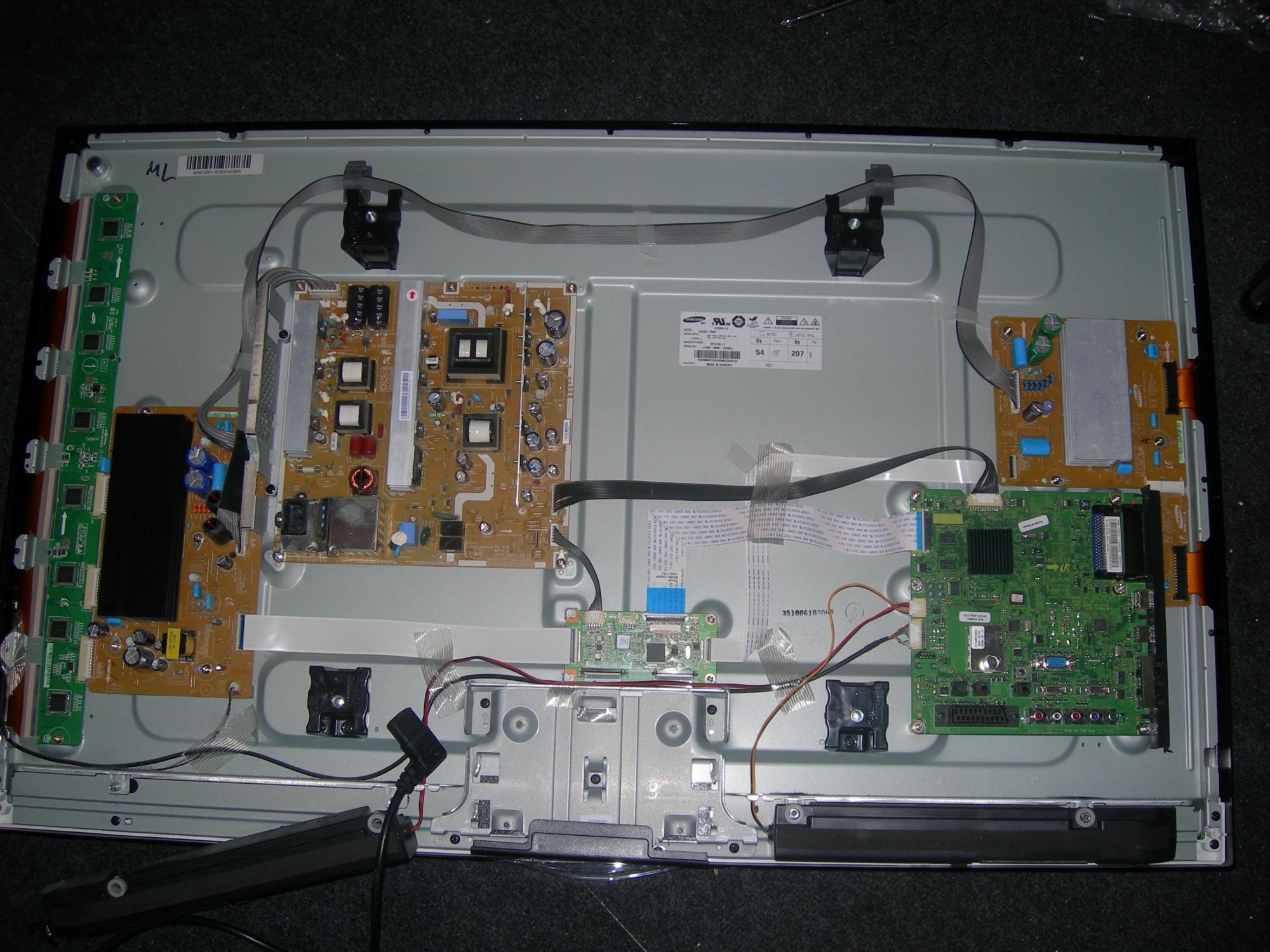 Okay, so I got this Samsung Plasma TV model ps42c450b1wxxu off someone hoping to repair it and maybe resell it. It's about 6-12 months old - Samsung still sell this same TV! Anyway, when powered on you can hear the Samsung chime (or melody, whatever it is) but the picture is completely dark.