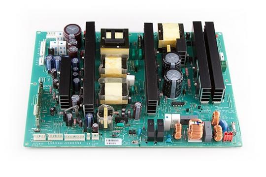 It is from the power board, # 3501Q00201A, and I've learned is used in several other models. It is the 2 large caps on on the right side of the power board, c169 and c170. I've come across pictures of the board that appear to say 330uF, but I can't see any other info on it. Any chance anyone knows what they are and where I can get them?