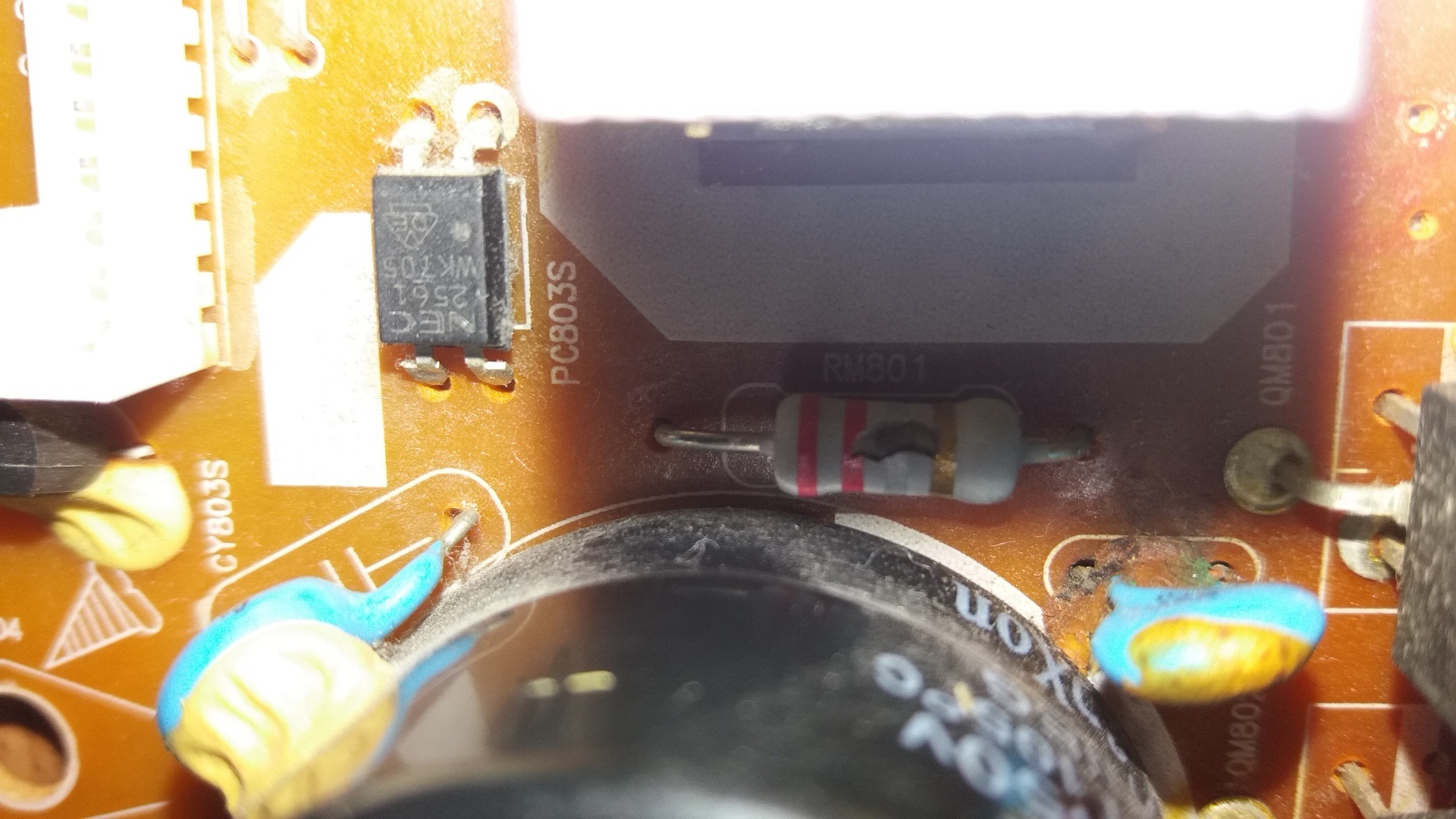 Hi, i'm new, I have the same board for the 32inch model, had a bad capacitor 10v 1000uf replaced this and would not turn on, i tried the things mentioned in this post,. on its own it will turn on after 15 minutes, resistor in rm801 checks out fine, capacitor cm861 had blown cap. replaced this. 24 volts fluctuating around 12 to 17 volts and slowly goes up to past 24 volts then tv turns on, this is on cm802 (s) any ideas on this. previous own used tv for cctv and was on until a power cut. does work fine after its been trying for 15 minuets.