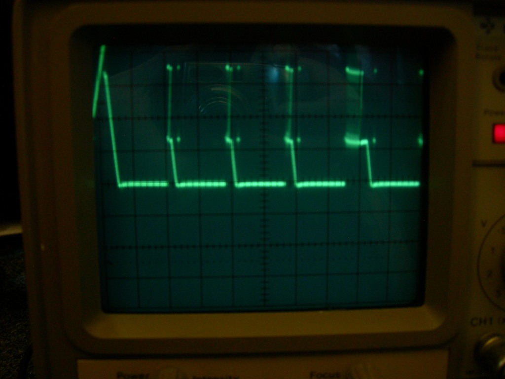 Surprisingly I was able to capture some of the sustain pulses too. However the scope does not have an adjustable trigger hold off (or triggers other than edge and TV), so a lot of other waveforms get superimposed on top.