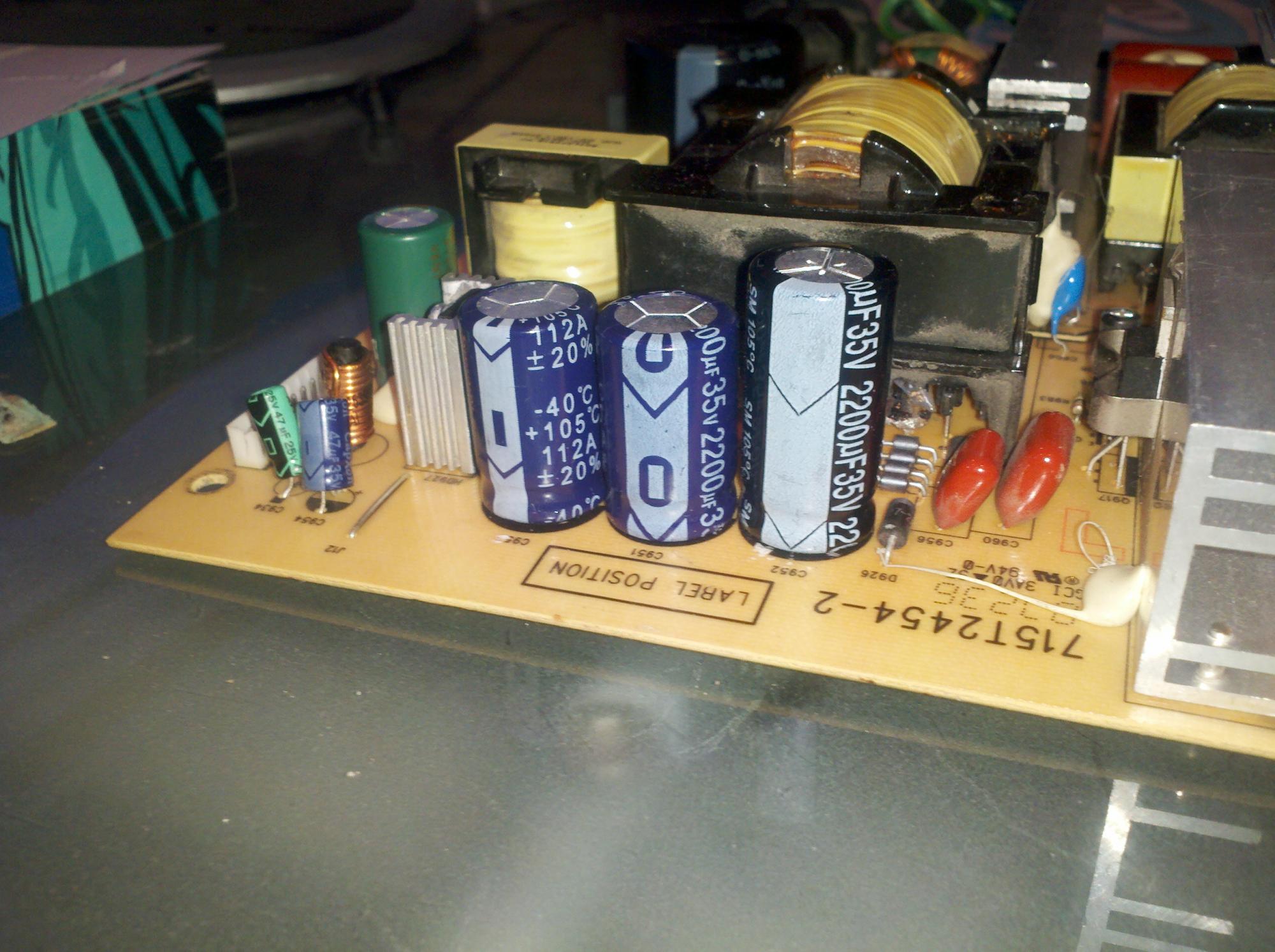 I think I may have worked on one of these once. If you've already replaced all four caps (whether visually bad or not) then list the voltages that you get on the output of this supply.The strong-minded rise to the challenge of their goals,the weak-minded BECOME HATERS