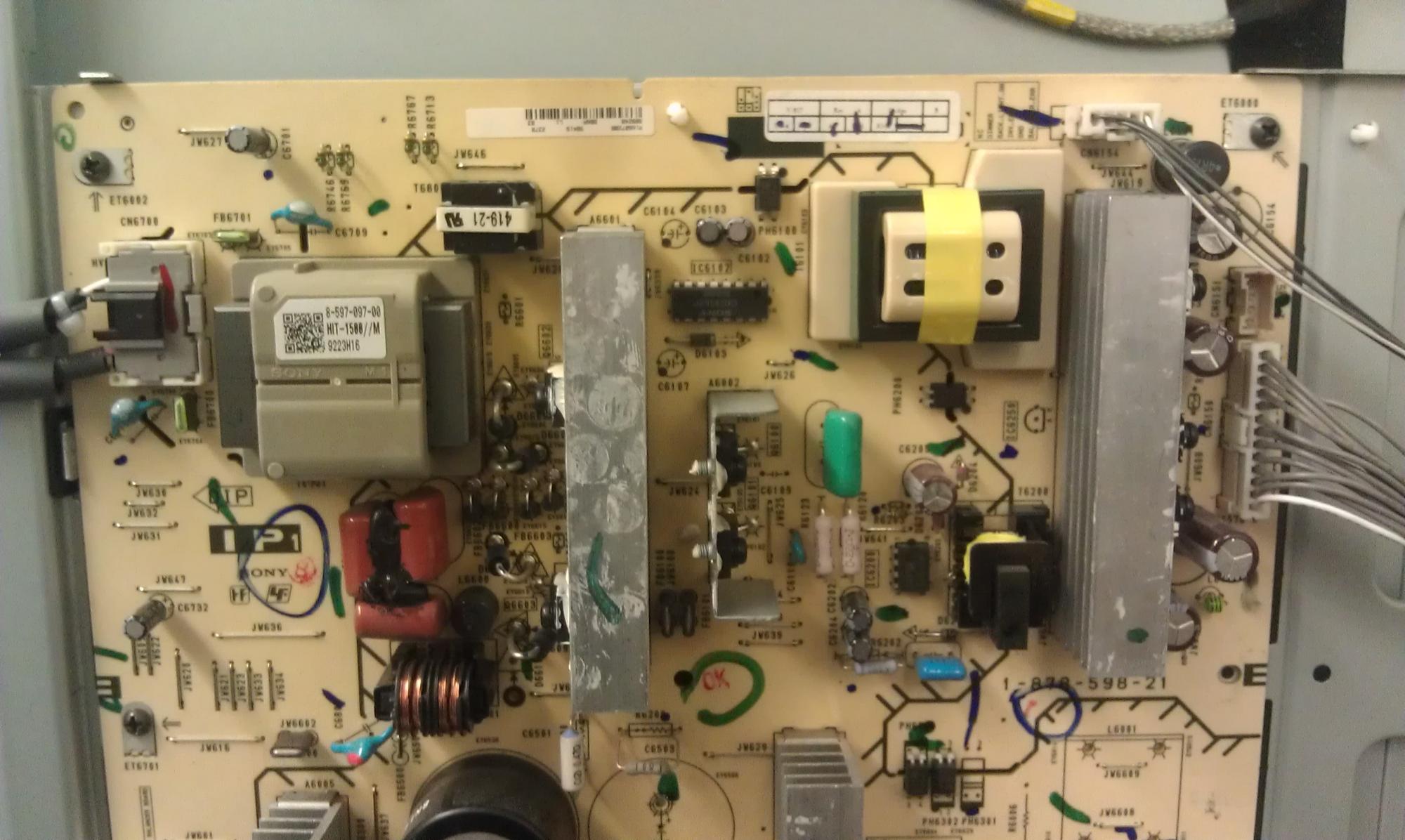 I have a 40 inch sony Bravia that powers on, green ight stays lit, but there's no picture or sound. There are no obvious bad caps and i do not own an ESR meter. From what I understand this might have to do with the ysus or mainboard. any thoughts? Here are some pics for you guys. There's still a board in the top center that has yet to be uncovered. Not sure which board that is. thanks so much for helping a newbie out!!! The only thing I've ever changed before are bad caps on a power supply and this is taking it to another level for me.