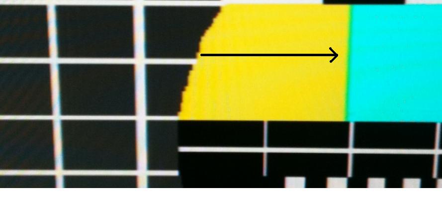 The ghosting isn't that noticable and even less so in a photograph. However I did notice there is a bit of a problem between the yellow and cyan squares, a green vertical line like the colours were mixing.