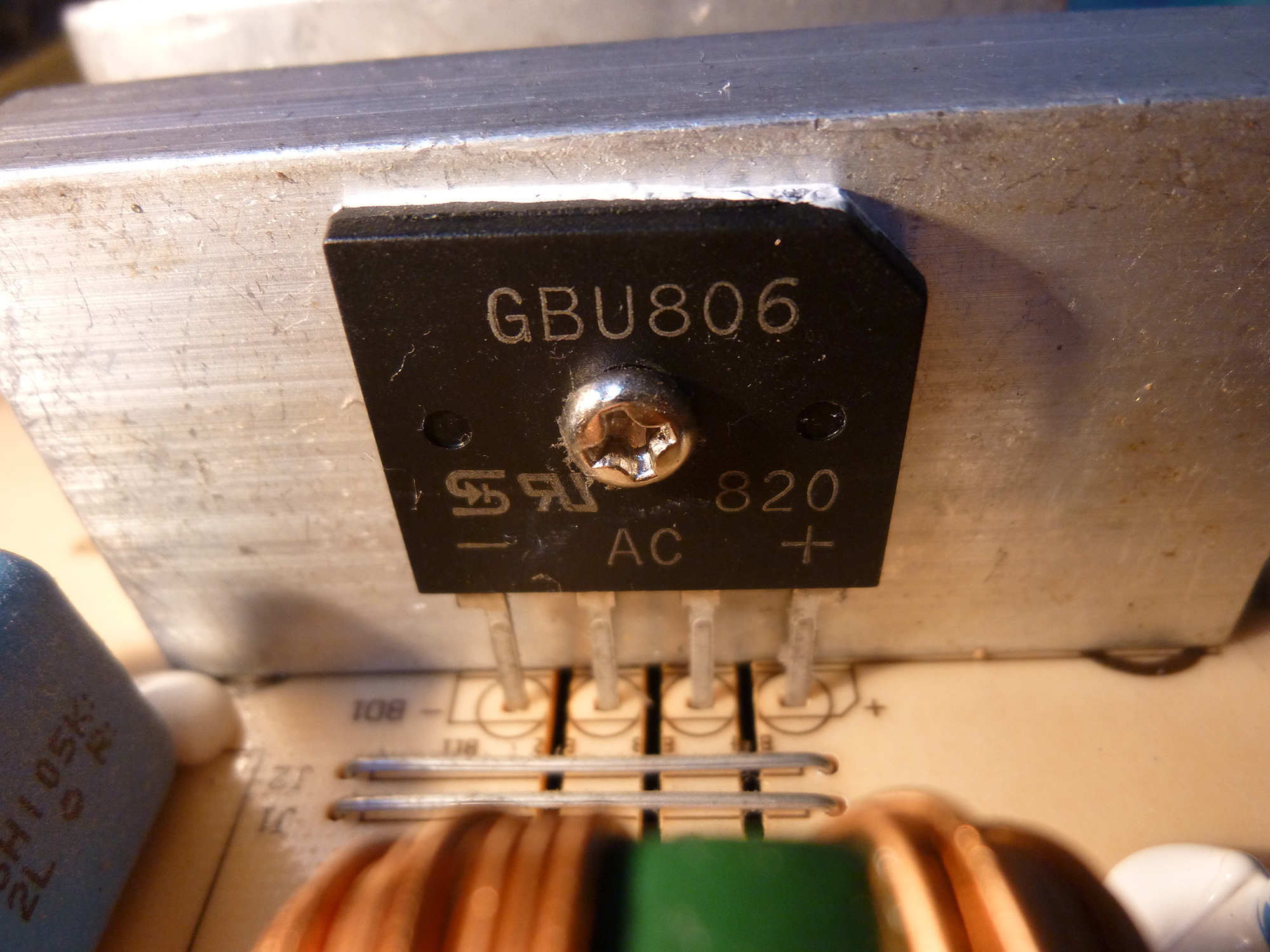 I could be wrong, but I think I see scorching around R206 between the heatsink for the rectifier and the one for the chopper transistor.