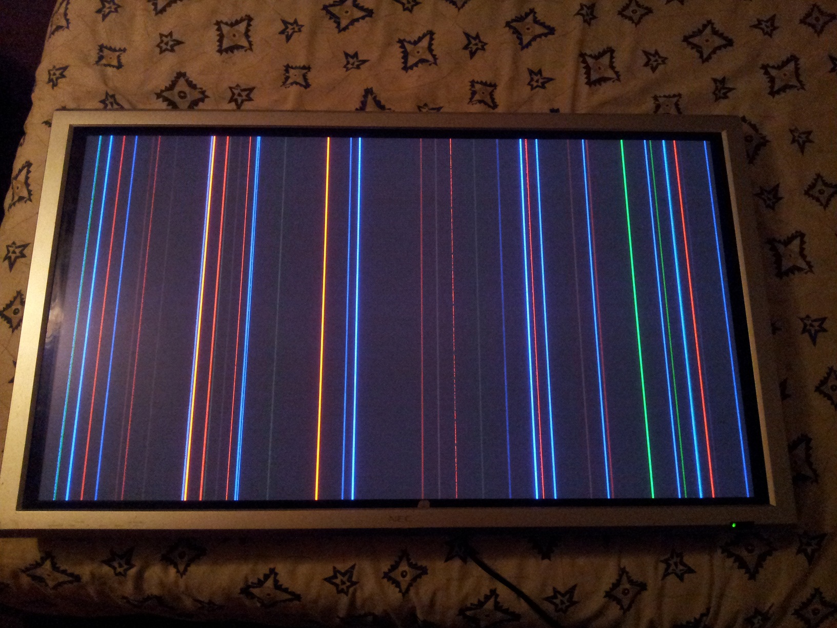 Thanks for the rapid reply on 8th Jan Tom, VERY much appreciated! Apologies for the slow 'thanks' and follow up. I thought I may aswell upload a .jpg of the TV switched on with no input just so you can confirm your fatal diagnosis. It's just the coloured lines (they're all stationary but some flicker) that are the issue when there's an input. Looks like I may be selling spares on eBay in the near future I fear... ;0(
