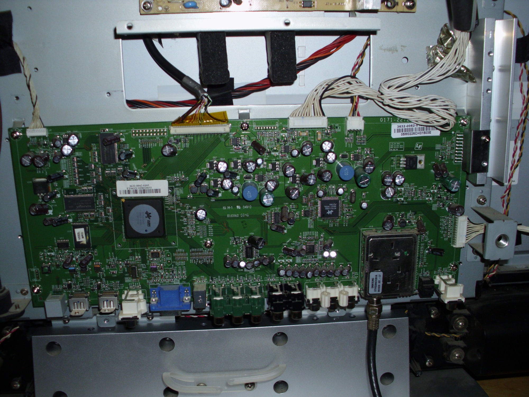 I unhook the cable on main board that went to t-con card- cycled input with -tuner/cable tv- hooked up -