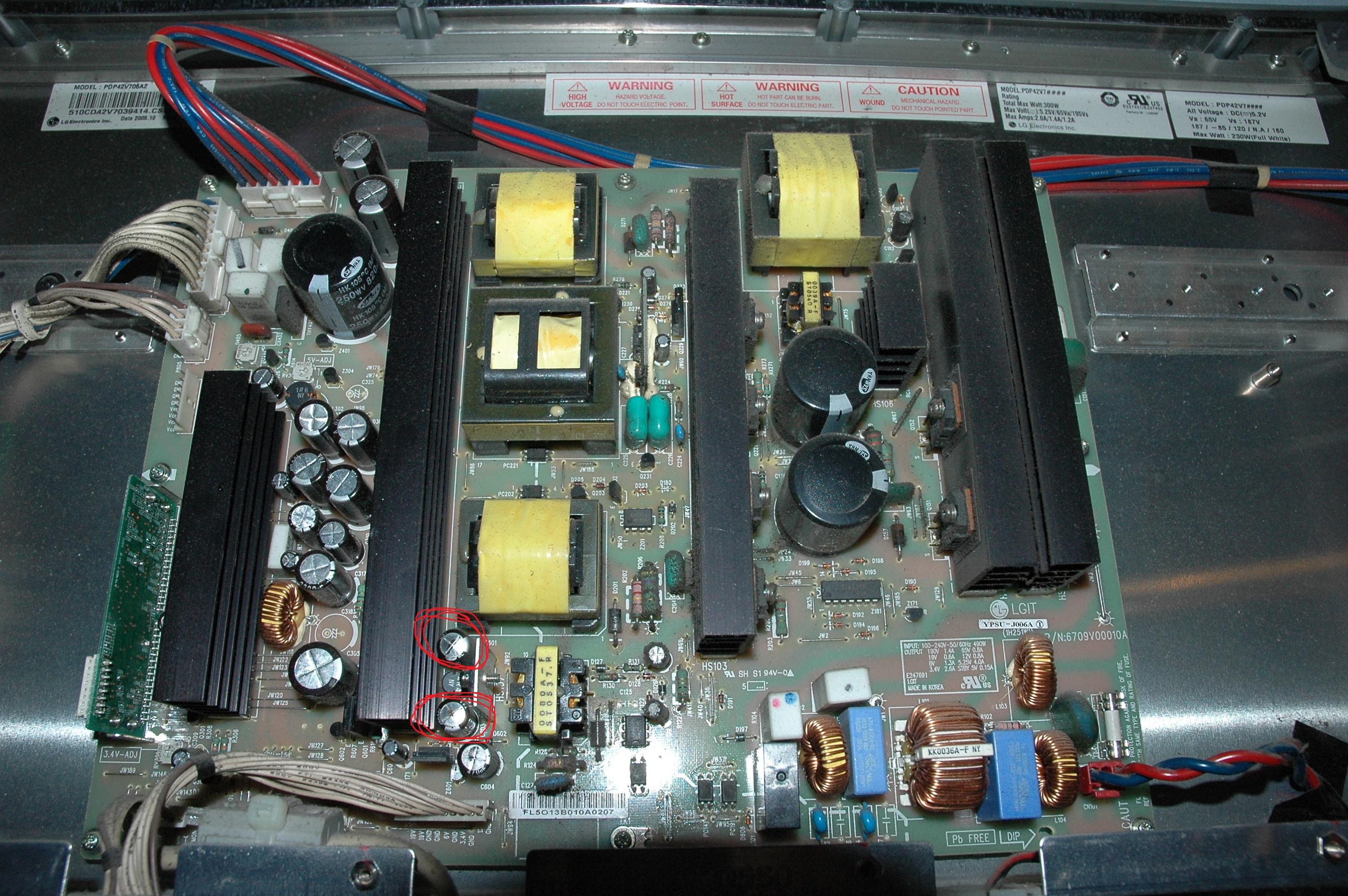 THANKS,i have one more plasma tv, lg 42px3rva which is older one,that i have found here in this apartment in which i live now,but i wont turn on at all,dead... he have 2 bad capacitors in some board,i dont know which board is that,other seems fine at first look... what do you think, whats the problem with it? sorry for offtopic...