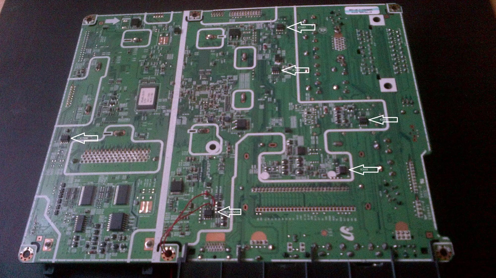 The bottom of that board looks different to the one I have. It does still have 6 8pin chips on it though and here are the numbers.