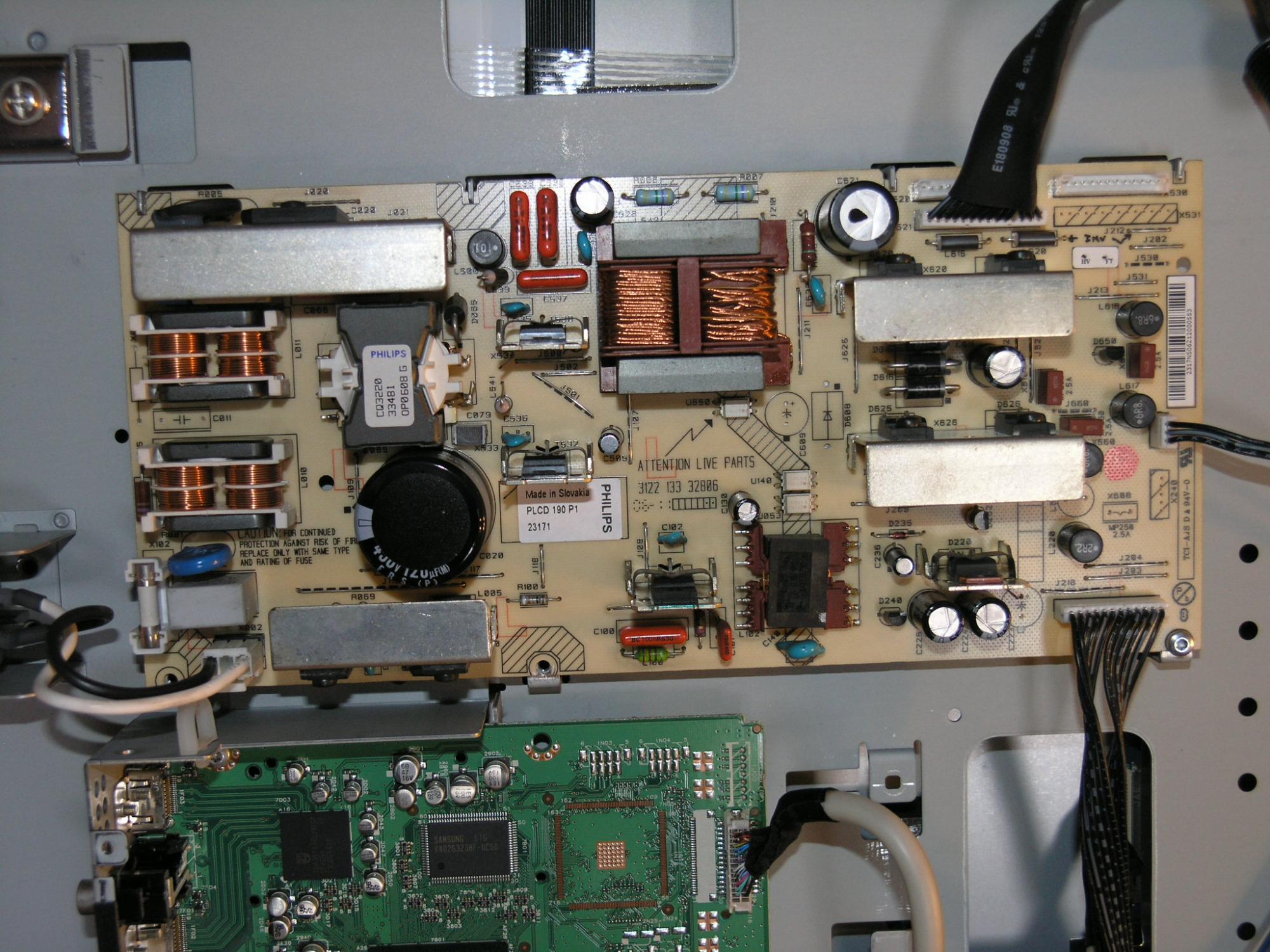 So far I've checked all the caps (except for some real tiny ones), all the diodes and all the transisters on the psu board - which is a PLCD 190 C1 type.