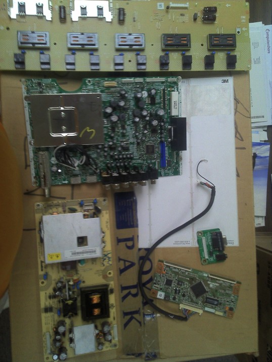 The logic board has power going to it but the t-con board is getting nothing. It's very hard for me to test this without knowing where the electricity should be going. If anyone has any suggestions, please let me know. I will send pictures if requested. I think for the most part, if I can get my hands on a copy of the service manual, I should be able to figure it out myself. Thanks.