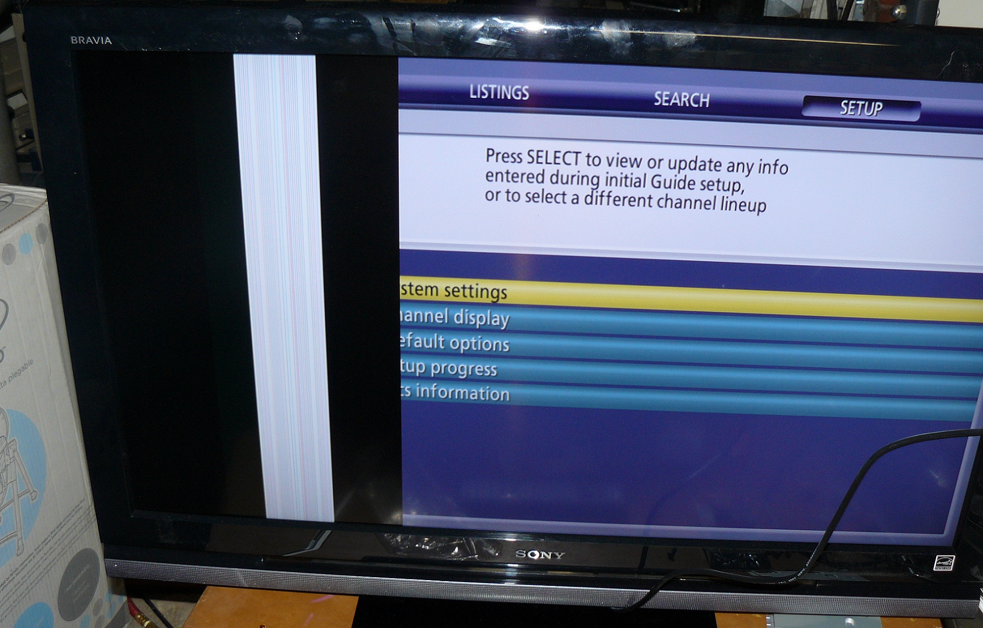 This is a co-workers tv. When i first turned it on about 3-4 inches on the far left side was black with a few multicolored lines in it kinda like a bar code. If i pressed the menu button you could see some of the menu box, atleast what stuck out beyond the black. I wiggled the tcon cable as suggested in budm's sony tcon pdf to see if a change in the screen would happen.