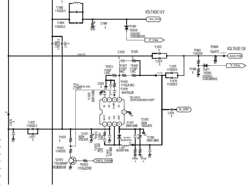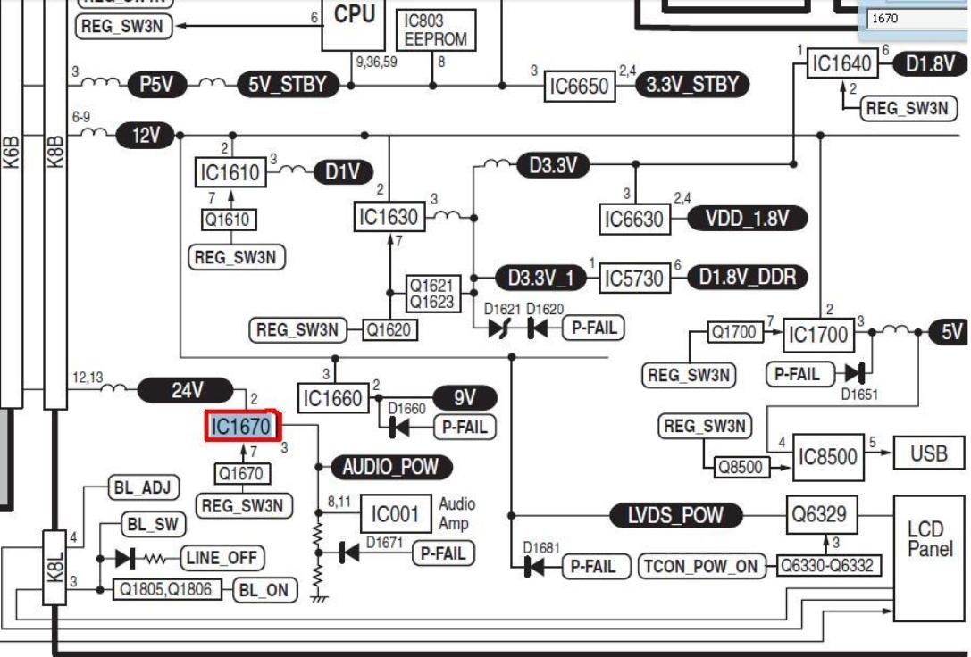 Audio.Pow IC1670 is where I think the problem is, gets 24v in, but out is sporatic, winds up at about 3vdc before shutdown.