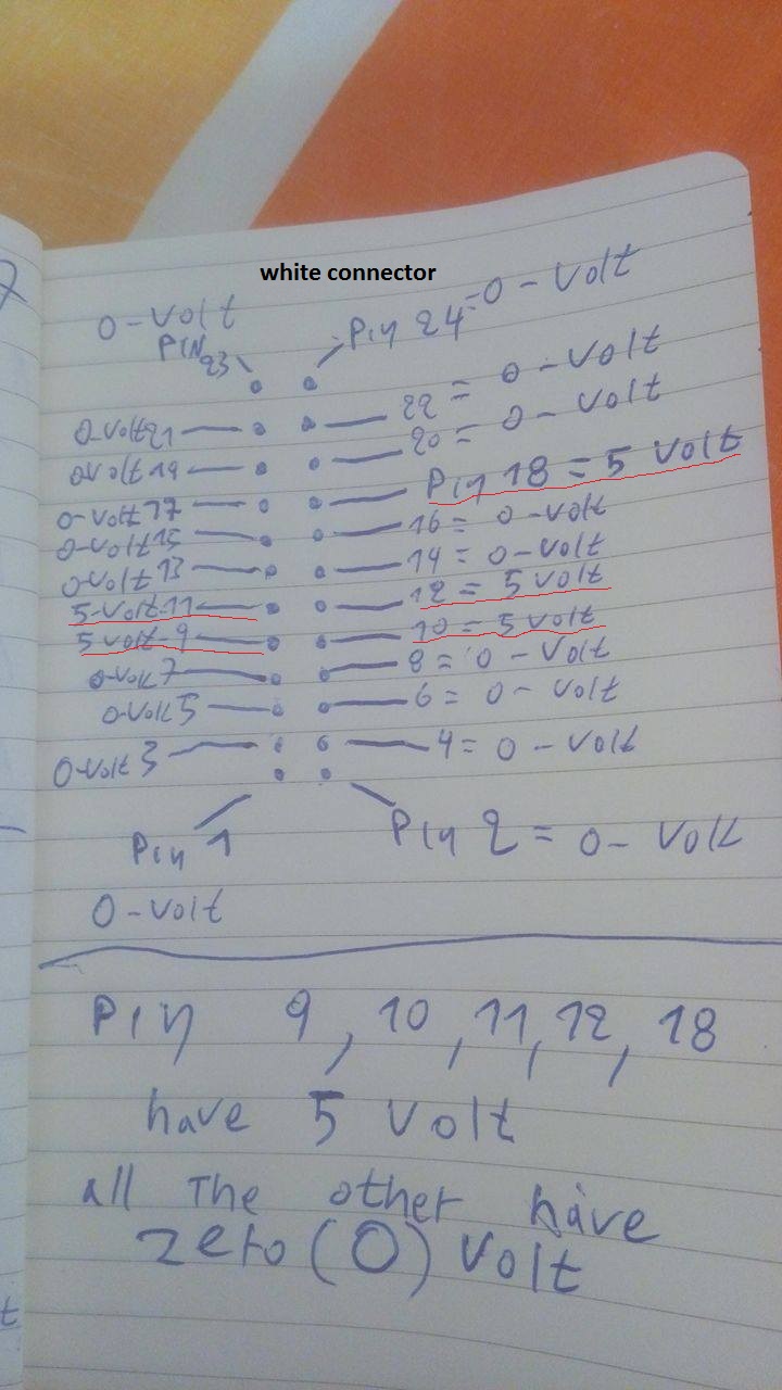 where is the true way to take the volts? i measure from the red place only the negative to the other . if i pul out the white cable i make measured the red place and take zero volt..if i pull in the white cable i take 24 volt and five volt to the red place. now to take measure only the white place i have only the five volt not the 16 volt...if you wait i can sent a foto