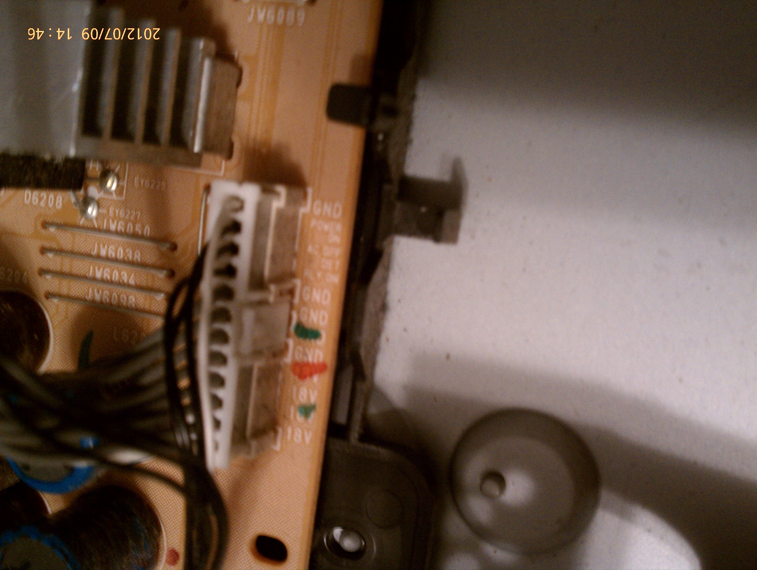CN7009 is on the main board, and the connector referenced in the inverter power failure circuit posted earlier. There are 7 wires, 4 go to PS board (Gnd, Power_On, Ac_Off_Det, Power5) as shown in the last pic, and 3 go to inverter board (Dimmer, Backlight, Panel_Det)