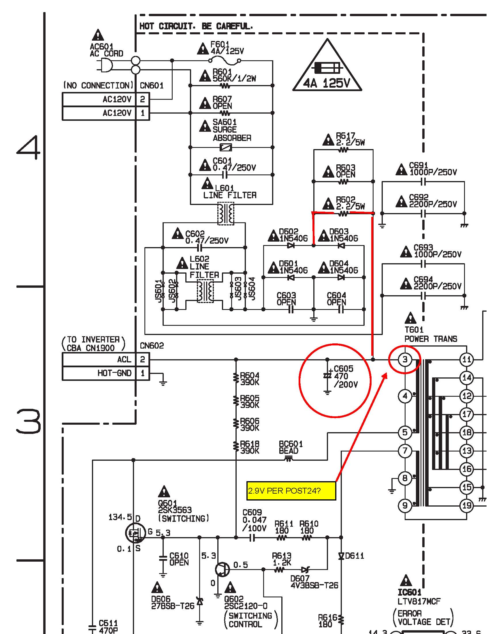 What do you get at pin 3 of T601?