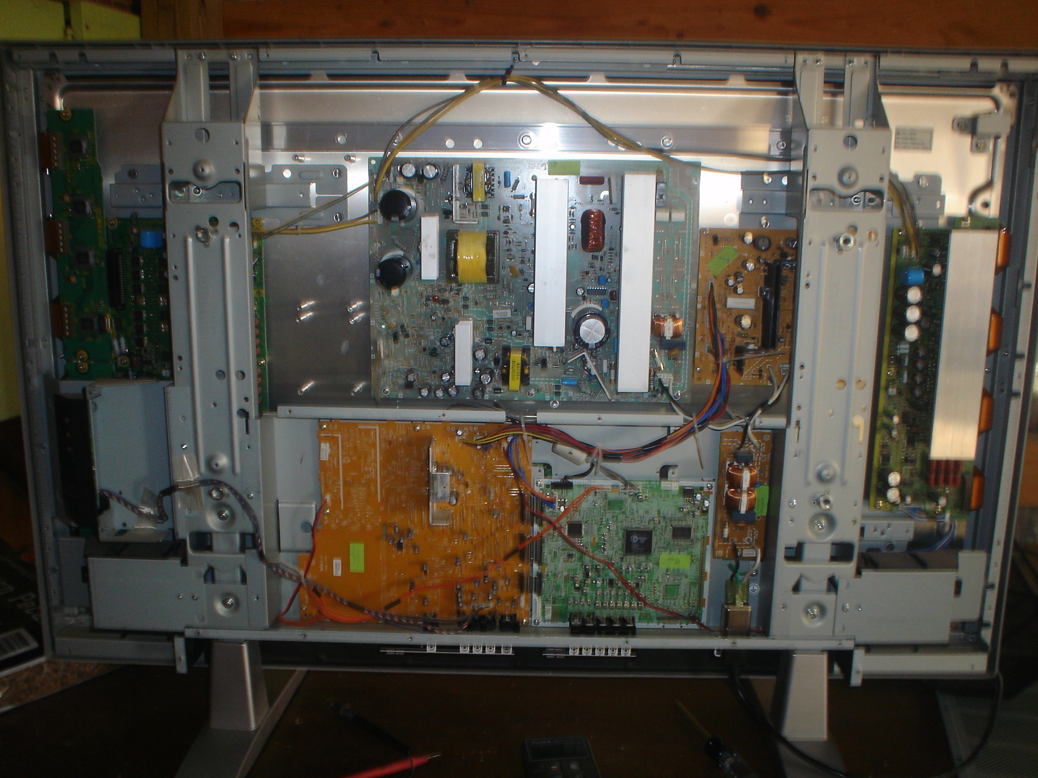 The guy I got it from said he was watching it and there was a flash across the screen and it went off. Now when you push the power button you here a click and the power light comes on for a second and then back to standby. Never any picture or sound. I do have some electronics experiance as I' built a lighting controler for christmas displays. I've also built a 5F1 tube guitar amp. I have several multimeters including a fluke, bluepoint and craftsman. I have soldering irons and guns ranging from 25watt to 300 watt.Comment