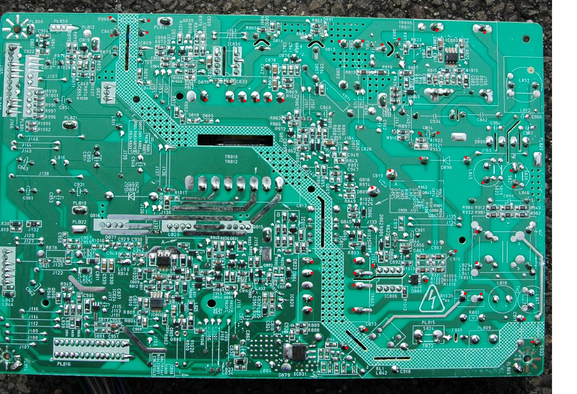 Can you check the joints marked with a magnifier and resolder any you think are bad- Its hard to tell on a picture but a few look to have cracks/rings.