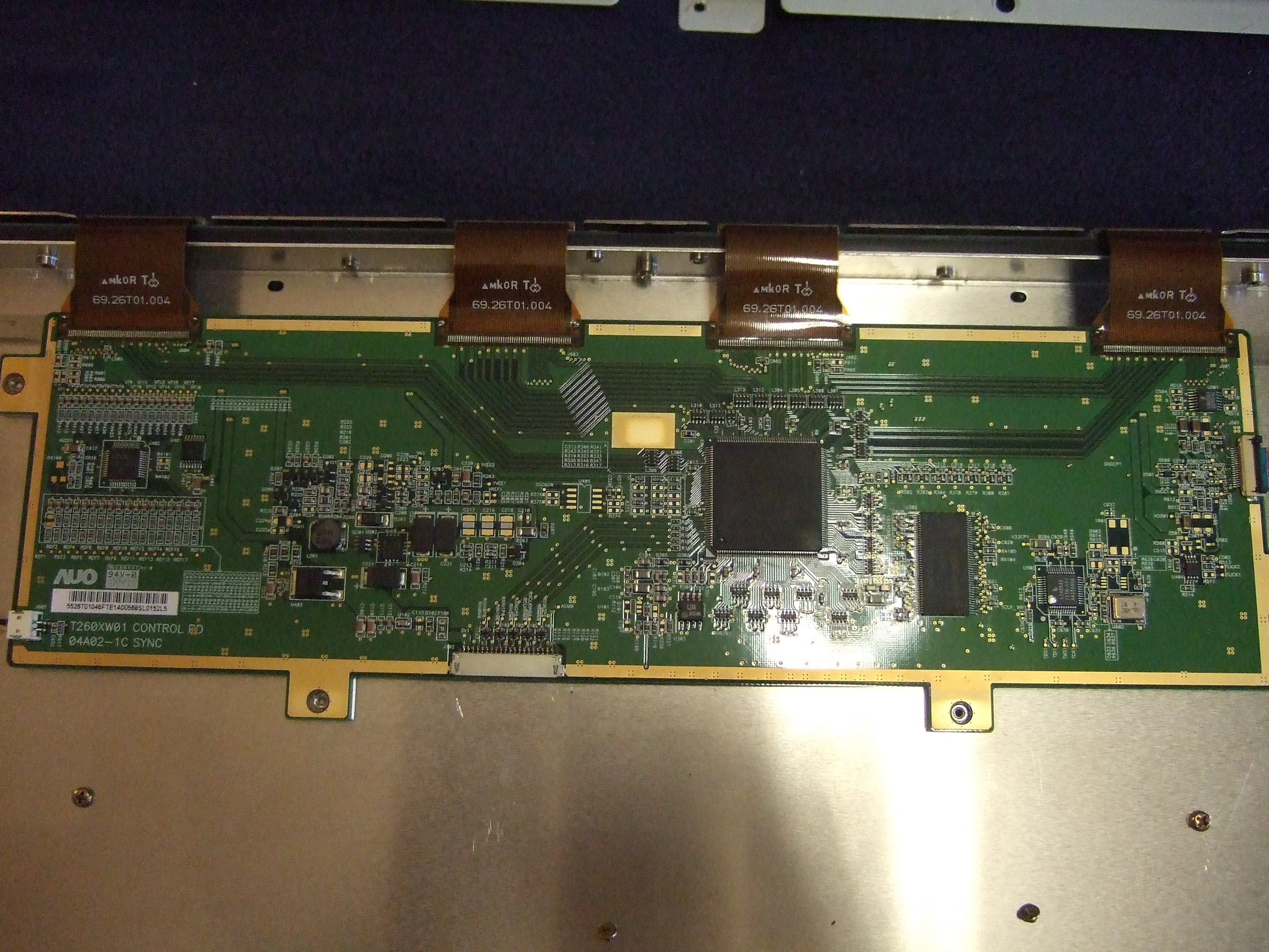 • TV came with vertical bars and no image. Found faulty TVS on left buffer board. Also replaced T-Con (may have damaged the original while hot air removing components, board has slight warp) and have full image but few horizontal lines on the screen. Some of the lines appears to be 2 pixel tall while others are 1 pixel tall.