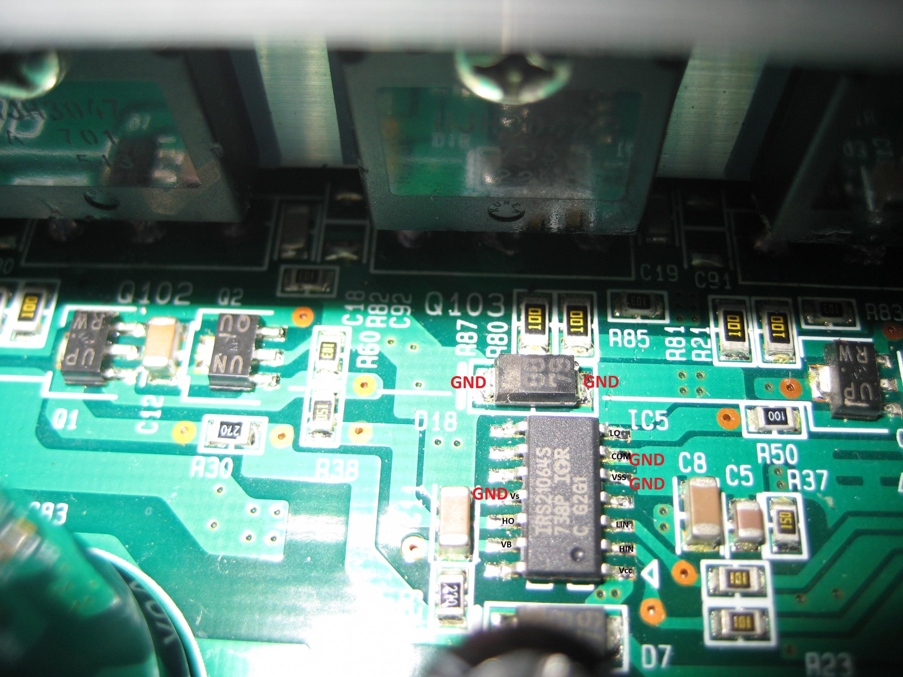Checking all components on the Z-SUS I came across a shorted diode next to the IGBTs that were previously replaced due to short. Desoldering the diode, it tested OK but both empty pads were measured shorted to the GND of the Z-SUS. See attached picture. Following the printed wires it turned out that 3 pins of a IRS21064S driver IC cause the short. See attached data sheet. Having limited experience in IC testing could you please advise whether this IC seems faulty.