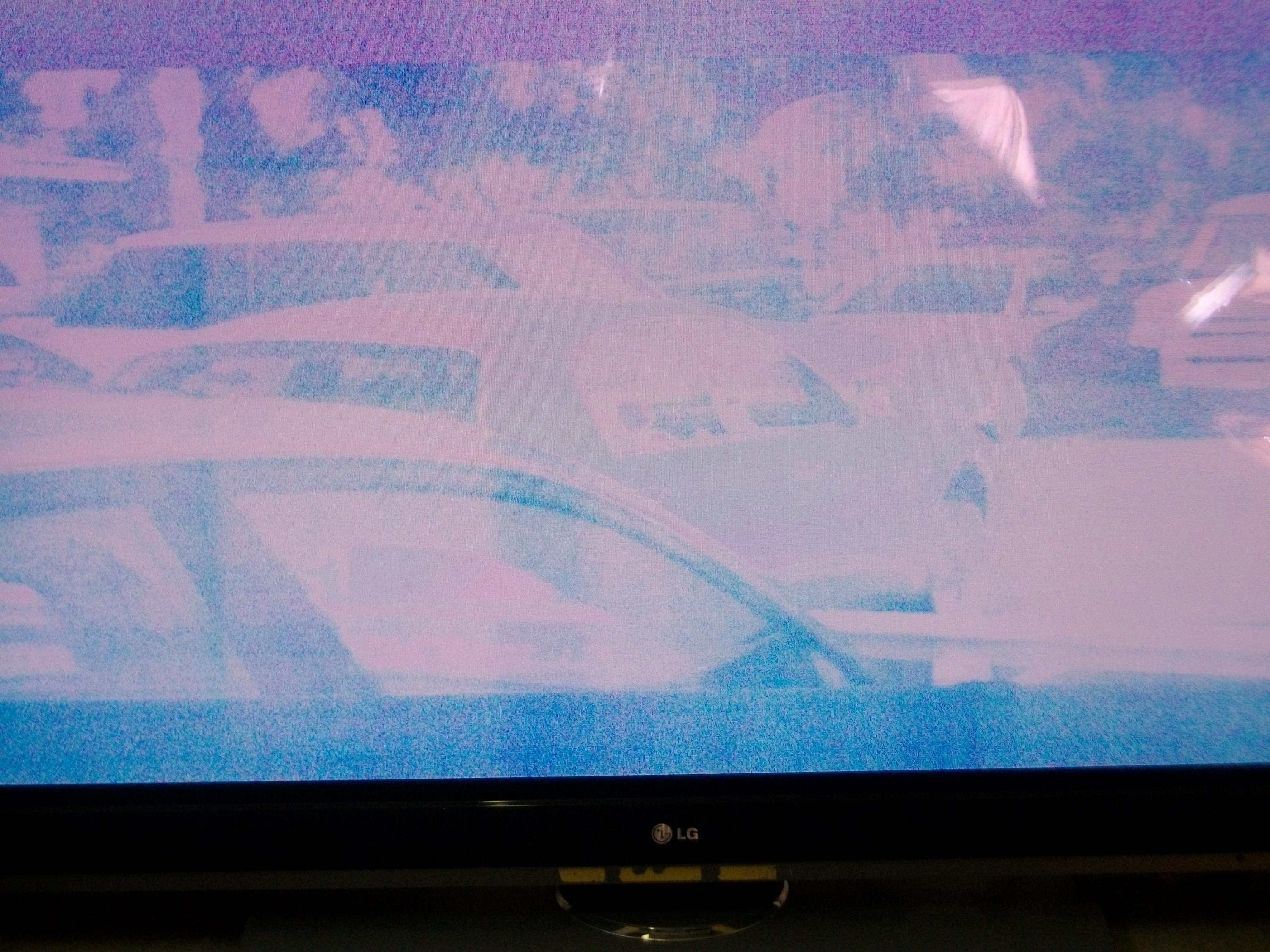 It has a very washed out picture with no colour and very pale blue appearance.