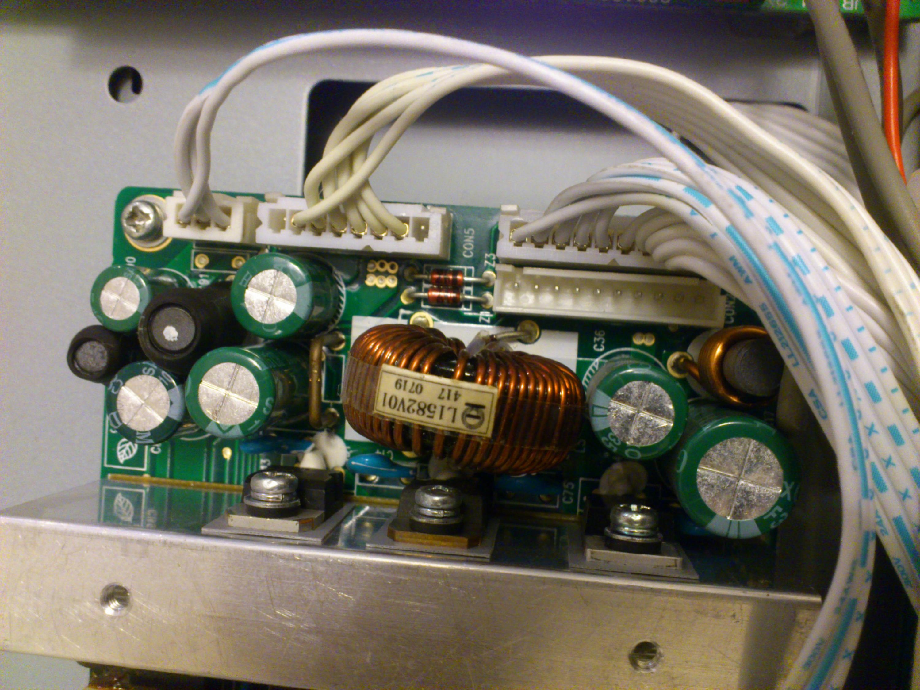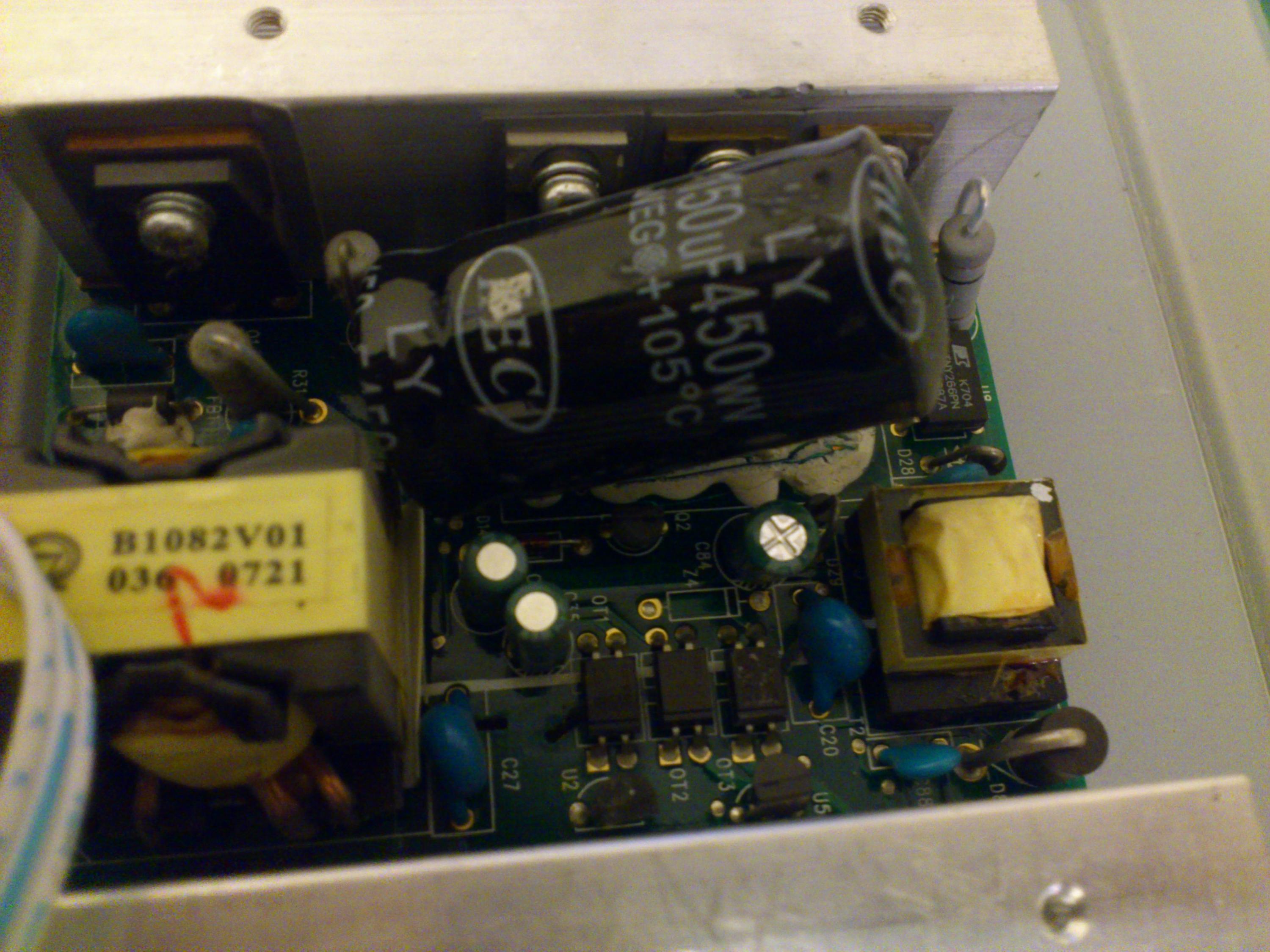 SORRY NO PICS BUT THERES ONLY ONE 105J RED CAP ON THE POWER SUPPLY AND ITS ON THE LEFT HAND SIDE OF THE BOARD