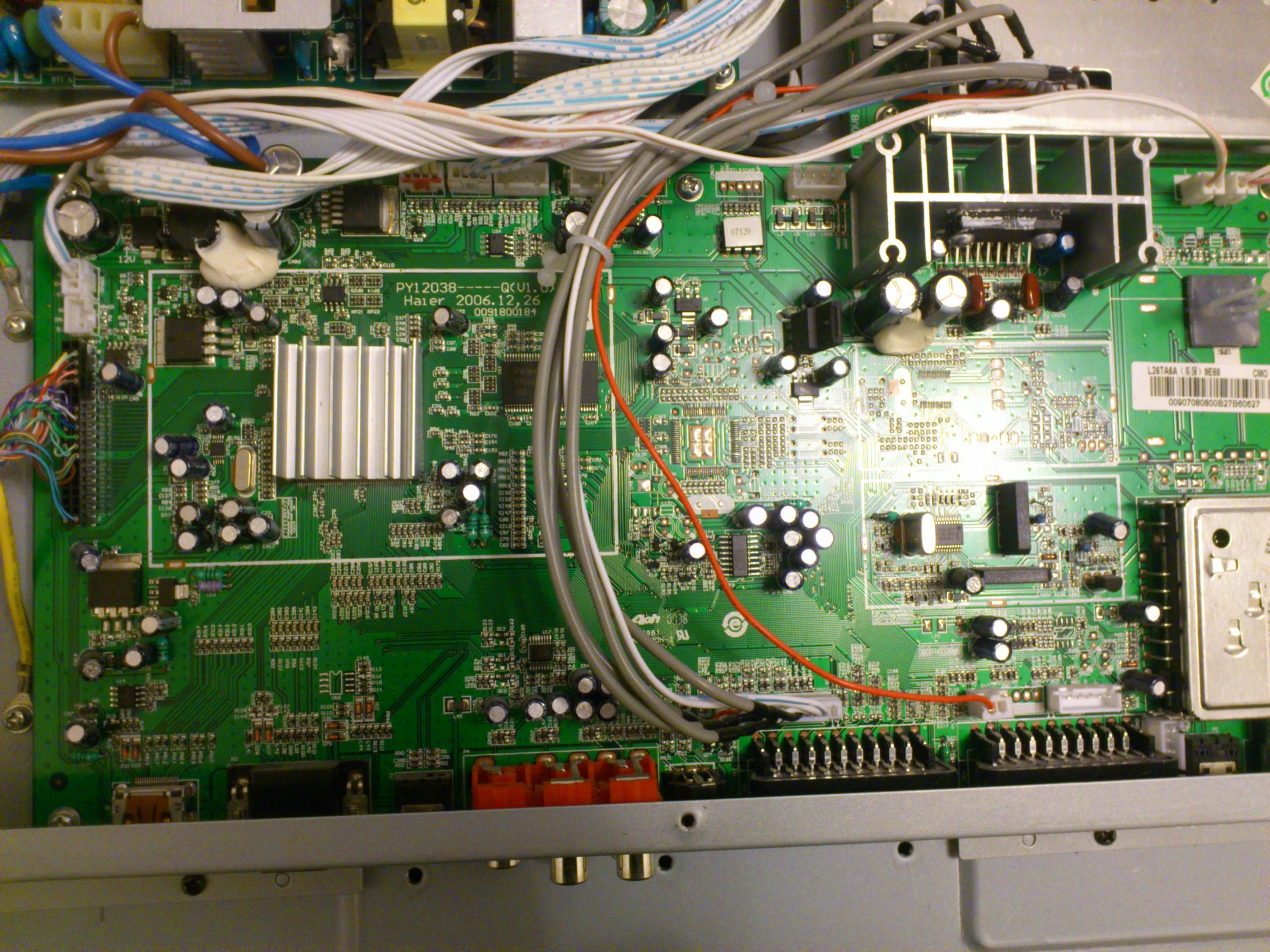 tv was taking about 10-15mins for the picture to appear there were just lines going horizontally across the screen, thought it was a bad solder joint or tcon cable, so ordered new cable...no differance, ordered tcon and fitted no differance, sent tcon back and swopped for a main board.....still no change! but there was some dodgy noises coming from 105J cap on PSU so decided to swop it and see if that sorted it, and low and behold....BINGO!