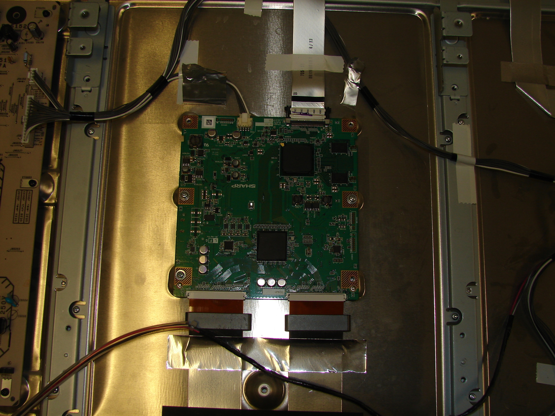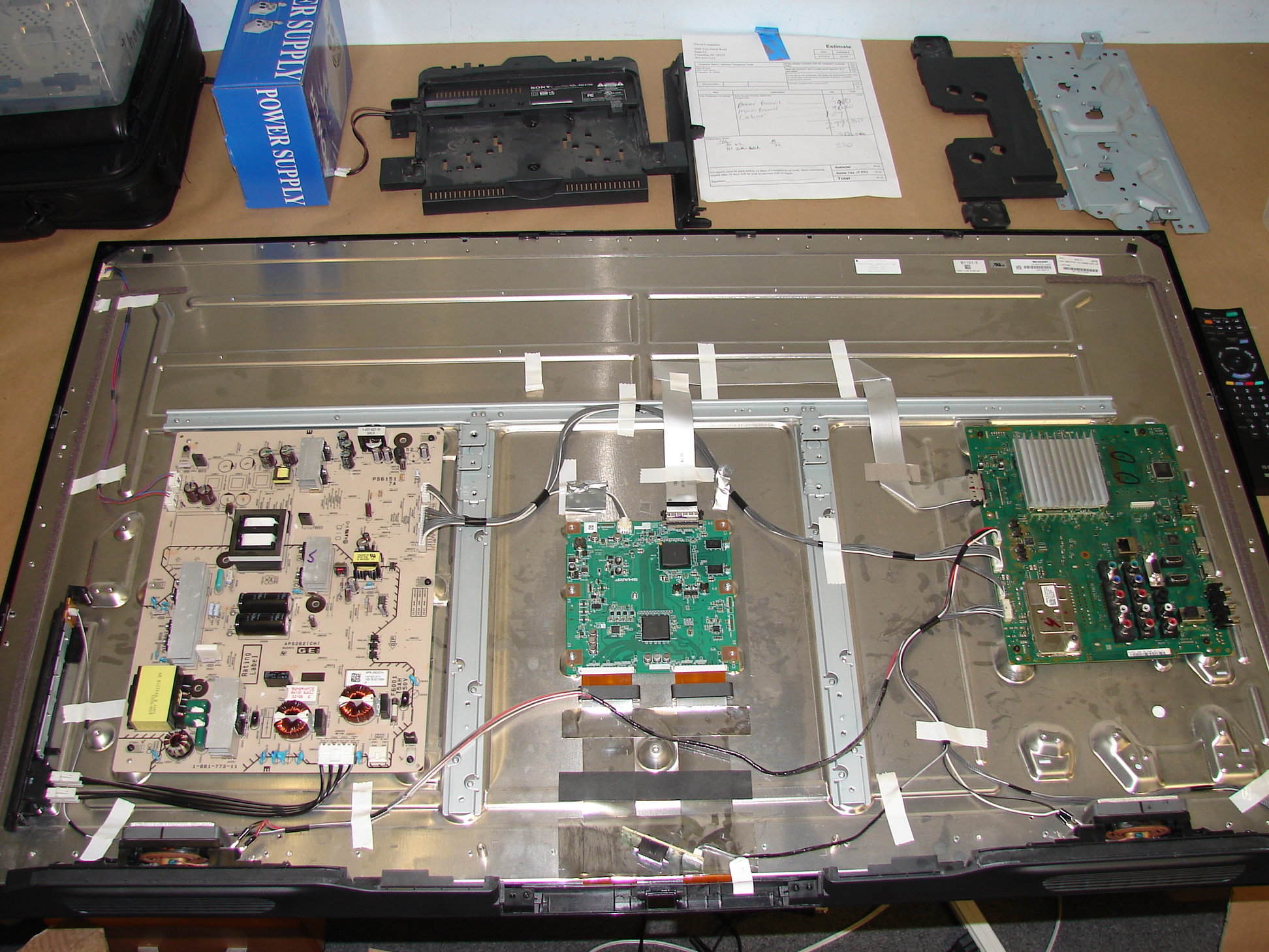 Actually those are the only boards on the back surface of the panel. It kinda threw me that this was an LED since I was used to that driver board (as I call it) for the LED's that is on the later models (well a 46nx800 and maybe some ex series) but the wires going to the panel were really skinny nor was there any inverter on the p/s. Maybe its on the side? But on the left (top right in pic) of the power supply those are the two connectors for the LEDs I would presume.