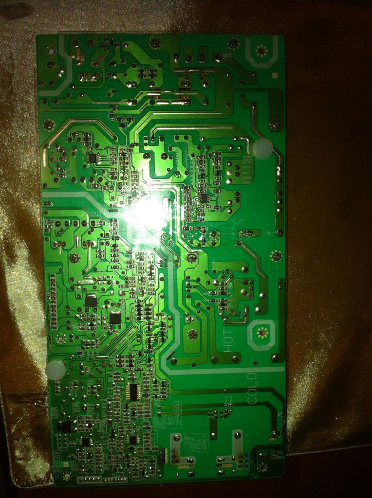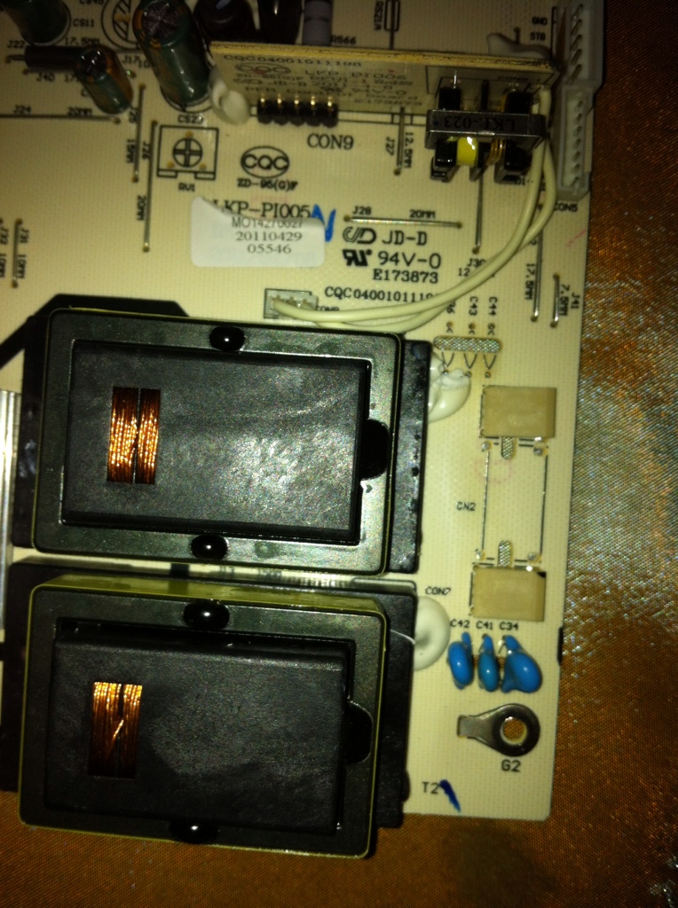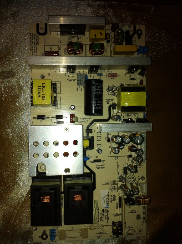 My Tv the backlight has gone out. Can see the image in the back but there is no backlight. When the Tv is turned out the light stays on for a 1second then turns off. So I took the back off the Tv and the first thing that jumps out is there is three blue capacitors that have gone brown. I have unsoldered them to identify the caps.