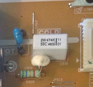 Hi and this is my first post. My father-in-law has a 46" Samsung LCD TV (LN46C600F3F) that turns on with no picture but has sound. I think I have identified the culprit as a bad capacitor (silver metal spewed out the side), but I can't find a replacement. The picture below is a similar one I cropped on a picture from the internet. It says 2W 474K on top and then SIC 460S on bottom. Anyone know where I can buy a replacement instead of buying a whole new board (Hansol BN44-00341B)? Any help or direction would be greatly appreciated as money is tight right now! Thanks.