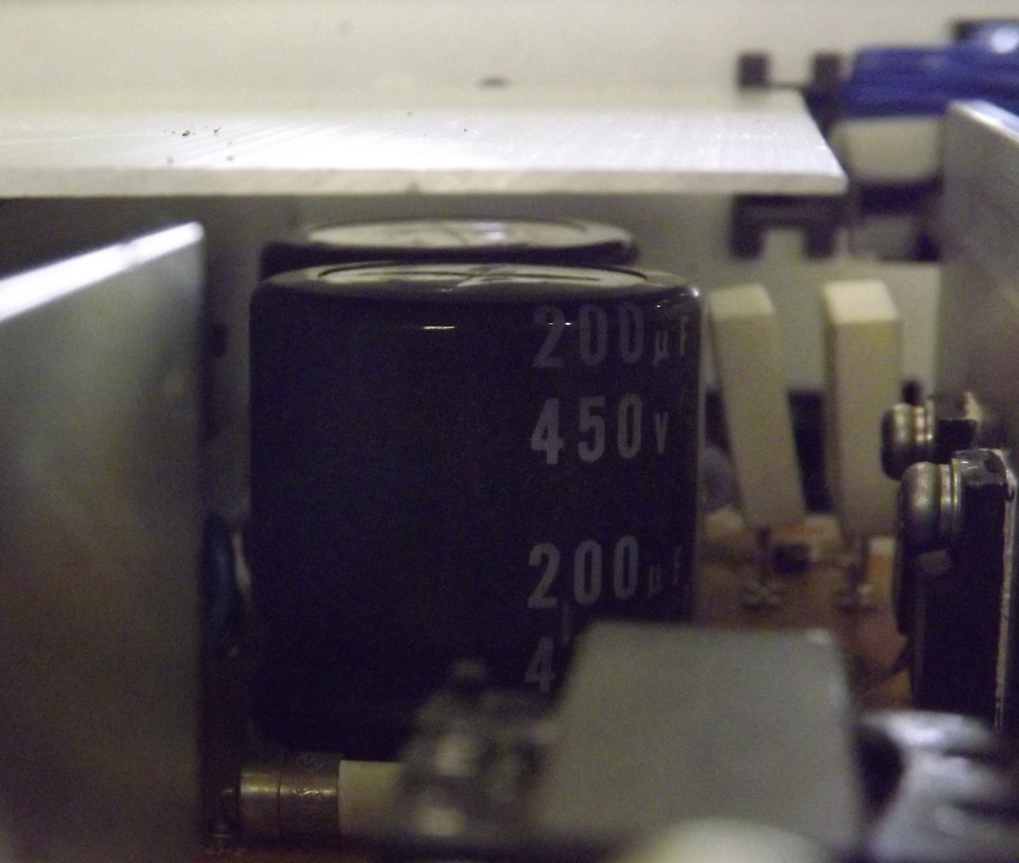 Its not bloated much but is some and all the other caps are perfectly flat,its a nichicon 200uf 450v.