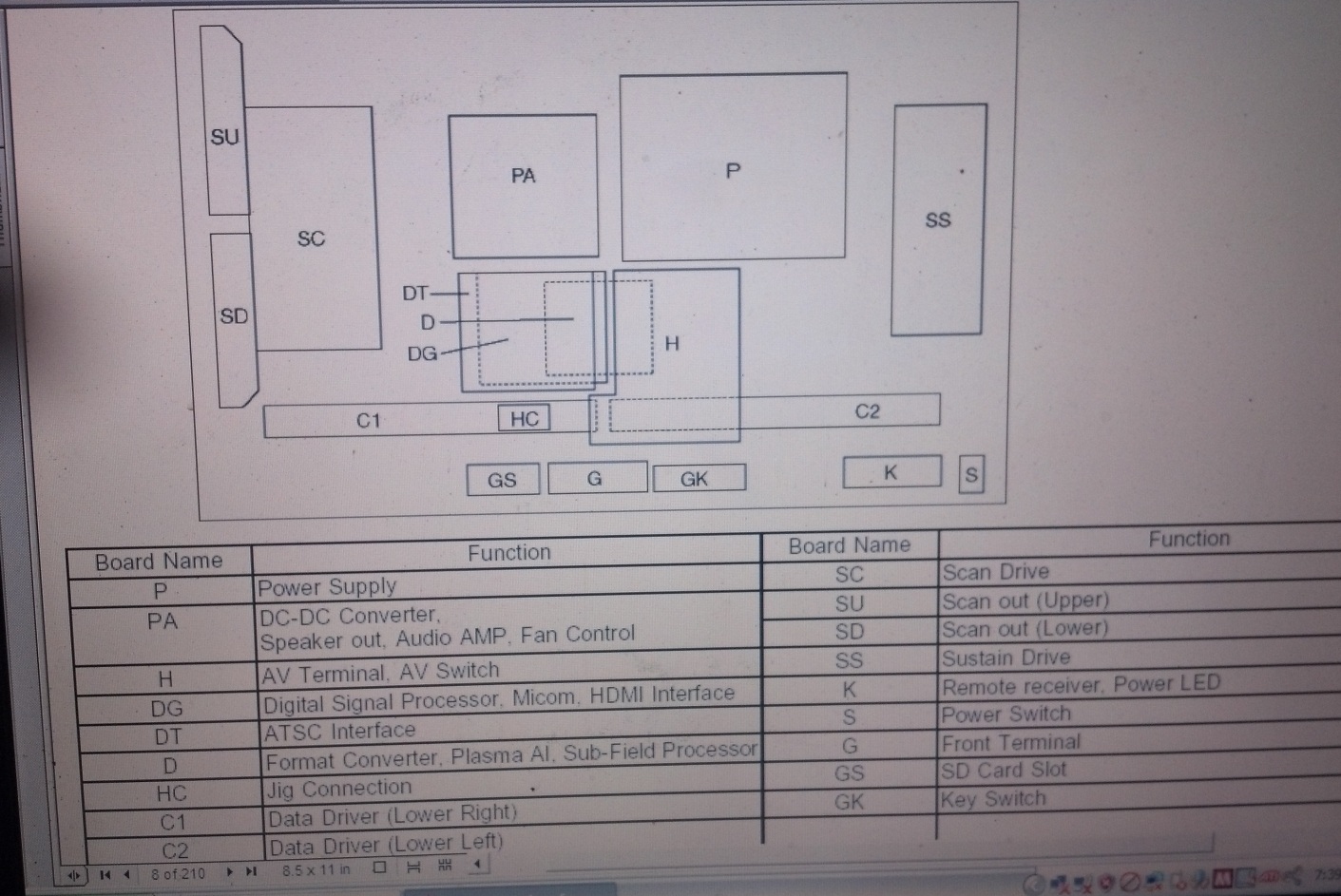 I downloaded the service manual and 7 blinks is... Driver SOS 2 (SC floating voltage area) Test points SU/SD/SS board