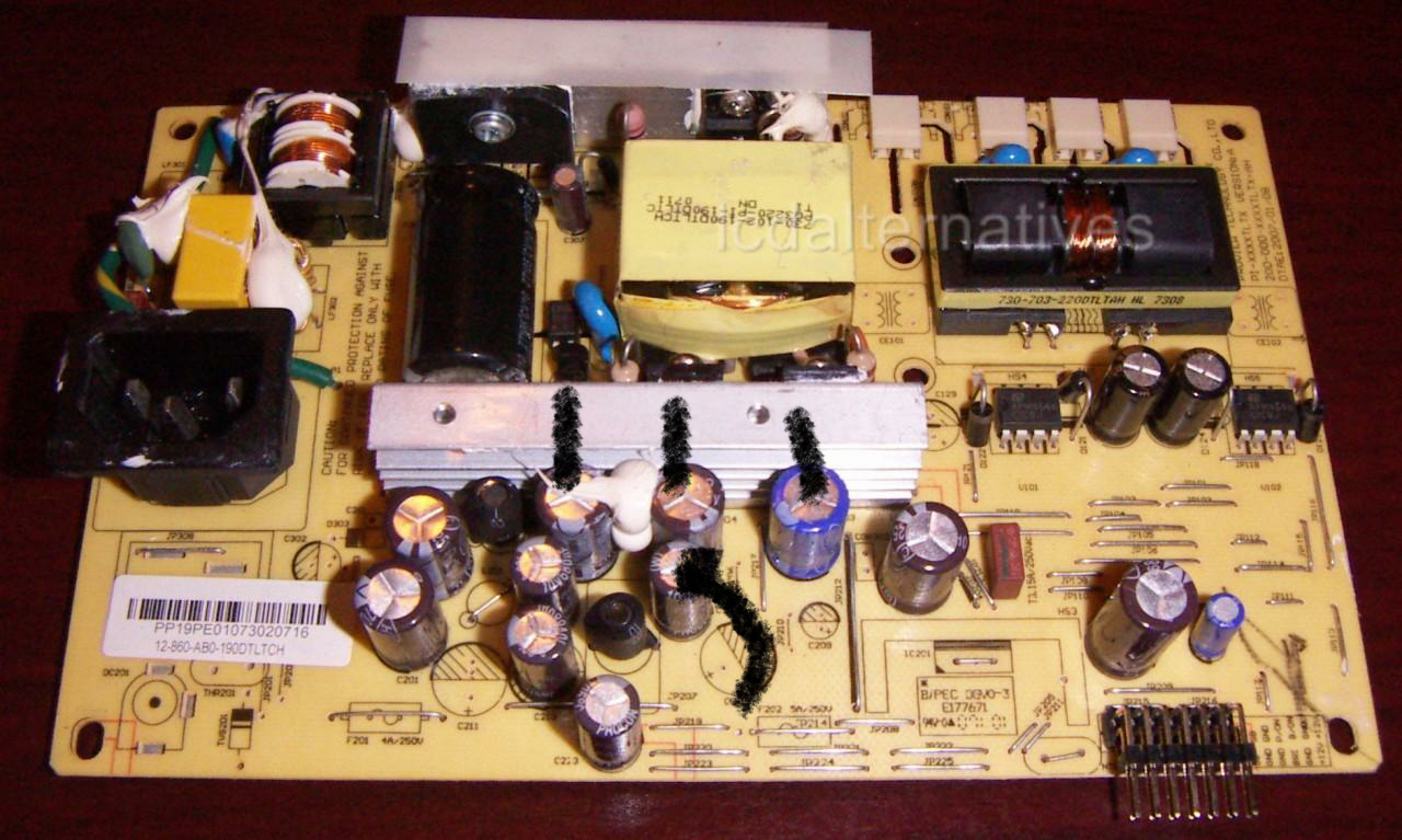 Thank you for the quick reply and your offer to help. But I dont have a digital camera. Best I could do was i found a picture same model board. I marked the caps that are beginning to bulge.So im just wondering if those caps are bad should I just toss it. And just look for a new tv and yes those caps I have lying around their the same thing as the one's bulging just in something else im not using so im guessing should work if the cap are the problem.thanks agian for your helpAttached Filesif you find these attachements useful please consider making a small donation to the site