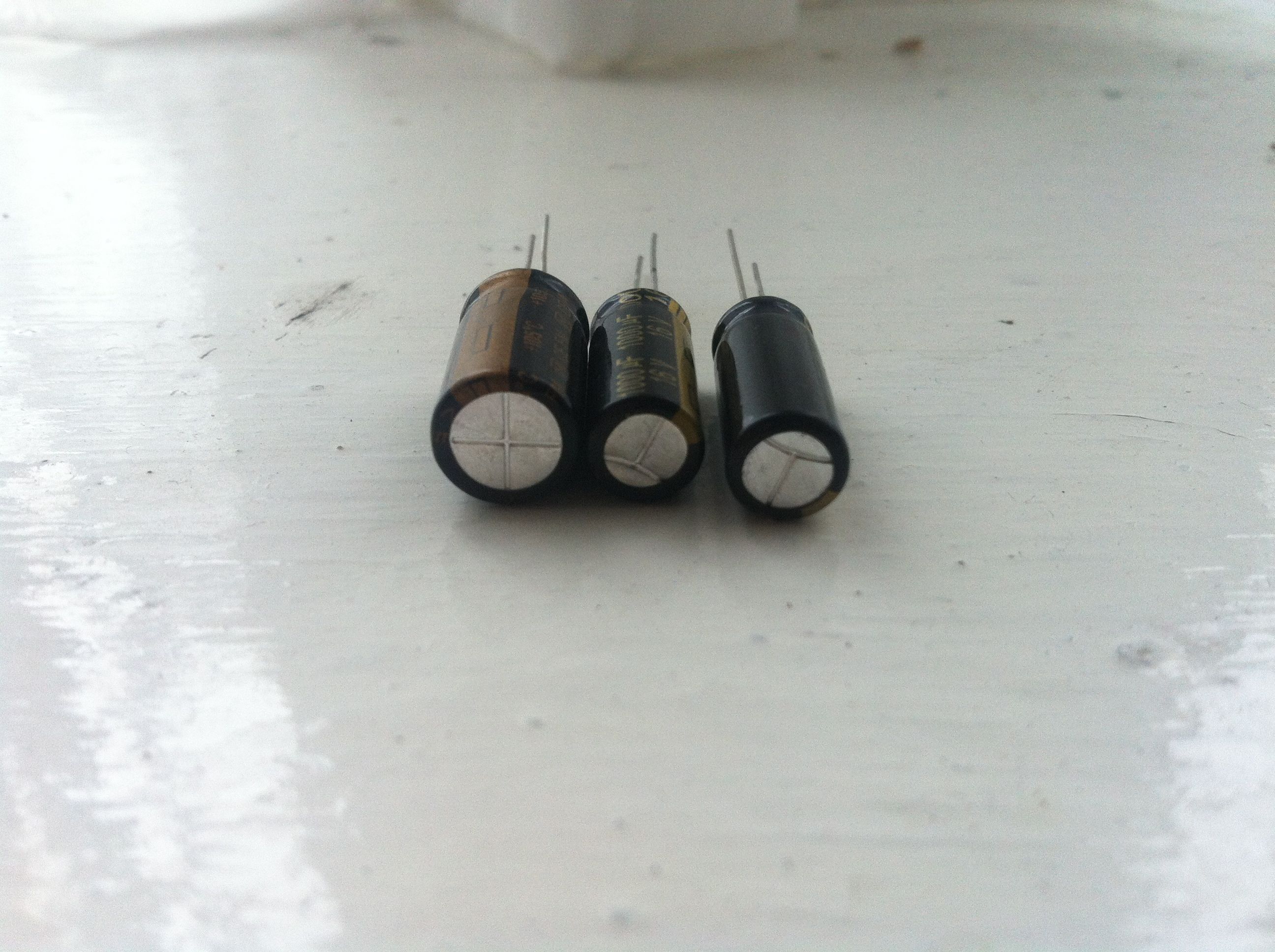 Thanks for the advice retiredcaps. I have taken photos of the three main batches of Caps that I bought. The reason I had to go with Ebay is because im in Ireland and so couldnt get them cheap from anywhere else that I could find. From first looks, it looks that maybe one of the batches may actually be fakes. The color of the label is more brown on navy than gold on navy compared to the other two batches. They have flat rubber for the bung, and a more common cross shape for the vent. However, im a bit sceptical that this may be the issue, as I have replaced the cap with a authentic spare one from another brand that I had on hand, and found that the 24v supply still dies to 0v when under load. What do you think?