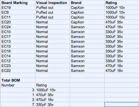 Two of the CrapXon capacitors on the secondary stage of the supply board were bulging on the top. Even though these were on the 5v rail, i decided to replace all the capacitors on the secondary stage of power supply with some panasonic low ESRs caps I found on Ebay.