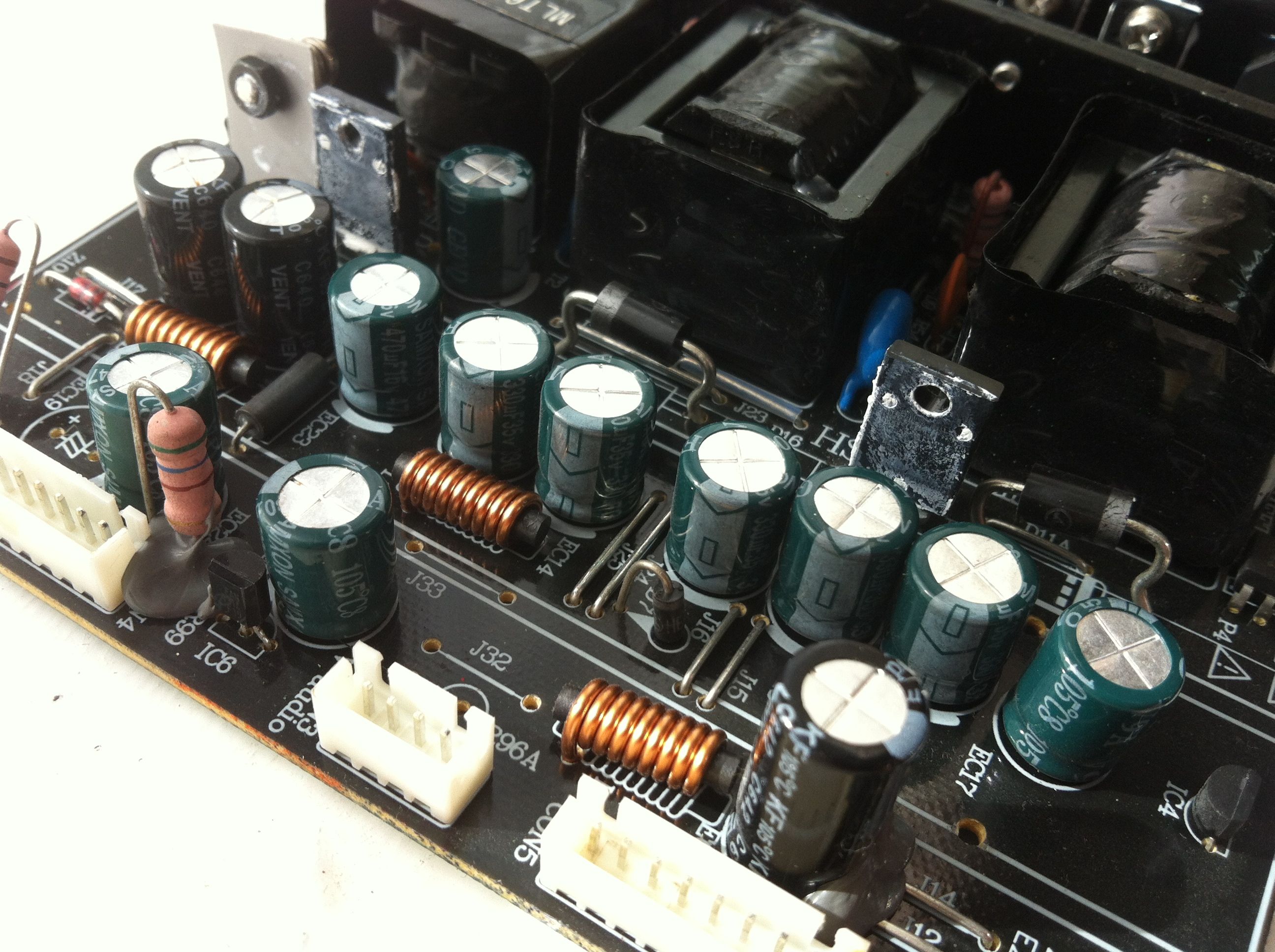 i decided to replace all the capacitors on the secondary stage of power supply with some panasonic low ESRs caps I found on Ebay.