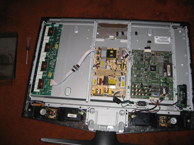 Found this site when I picked up a defective Dell Monitor hoping to fix it. Since then I have picked up a Samsung LN-S3238D TV. When I plug it in (Hooked to my computer) I get a broken up picture with a red tint. The mouse moves really slow and it seems like the picture ghosts for a little bit (I move the mouse but it doesn't move on the screen, then slowly the mouse is in the correct location). Not sure where to start as I just began this hobby. I pulled the board to take pictures and noticed the solder on the power supply connection is touching the connection next to it (I attached a picture). Also, I attached a picture of the other side of the board. Hopefully, someone can help!