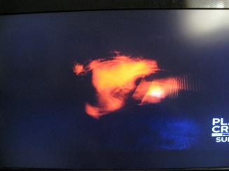 The menu is stationary. Looks better than a moving picture. The screen is not getting voltage to a section of the panel. The 10 ohm resistor and jumper bypasses the defect.