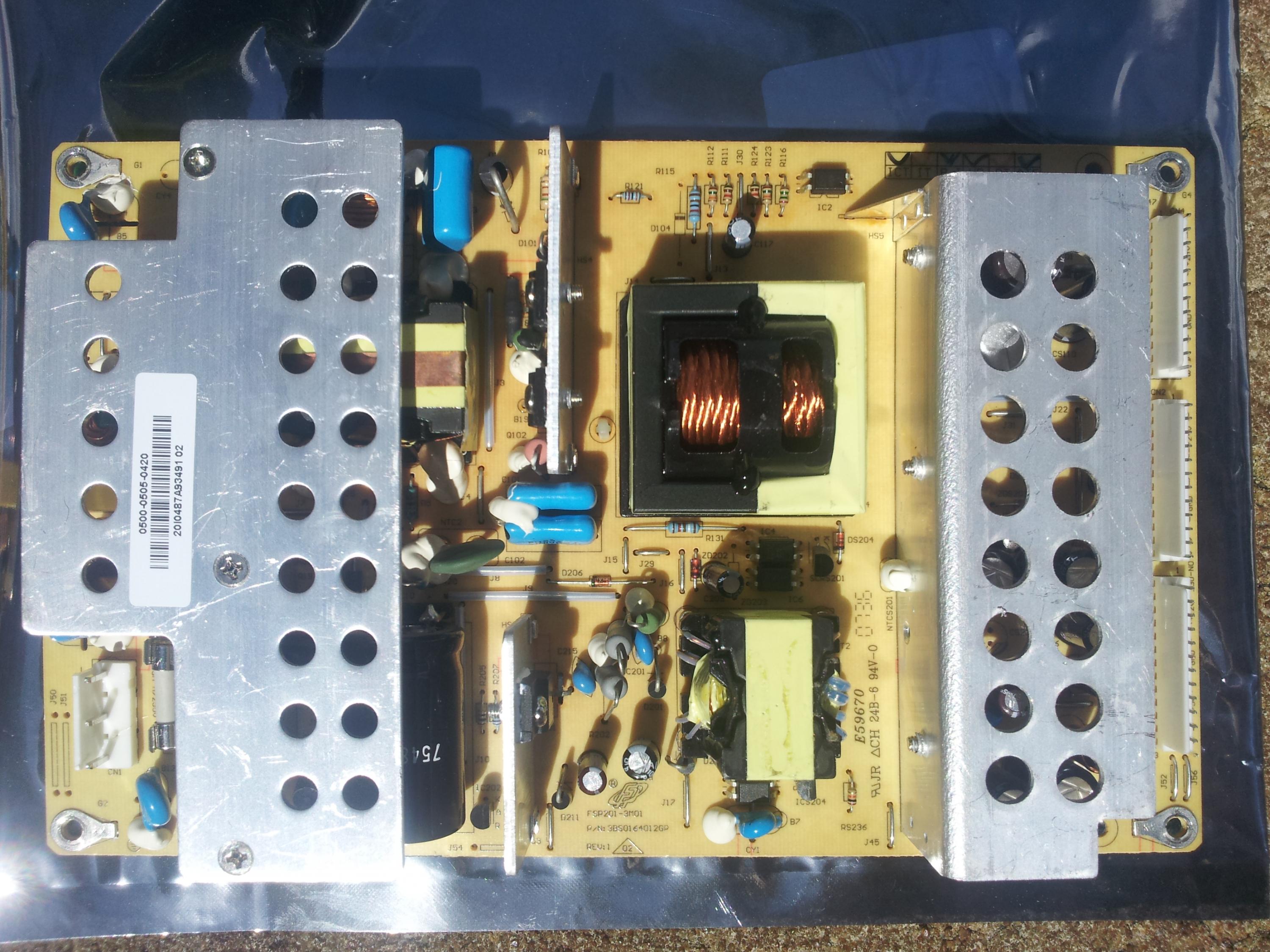 I have a Vizio VW37L HDTV20A with no power, no standby light, no response whatsoever. I pulled the cover, and tested all the rails on the power supply board, with no 0v on all rails. Even 5v standby voltage is missing. I have 67v ac at the big capacitor with reference to chassis ground. I have 67v ac at the hot side of the smaller transformer, but no dc or ac reading on the other side. There is no voltage anywhere on the cold side of the board. I am not experienced with transformers, so I'm not sure what could cause this. If I had the parts readily available, I would change the transformer. I have tested all the resistors and diodes that I could see.(though I could have easily missed one) No caps are bulging, and all but two have very low esr, the two with questionable esr are a 2.2uf 50v and a 1uf 50v. They are only at 1ohm. I have not changed them yet, because first, I wasn't sure if they would affect loss of standby, and second, I can't find a suitable low esr 1uf 50v cap on digikey. I have fixed other vizios with dc-dc voltage reg problems(u33 and the like) as well as some with bad caps on the board, and even one with a bad eeprom. This one is new to me, because tv repair is also new to me, I'm a fiber optic splicer for the giant corporation with initials. Any assistance would be awesome.