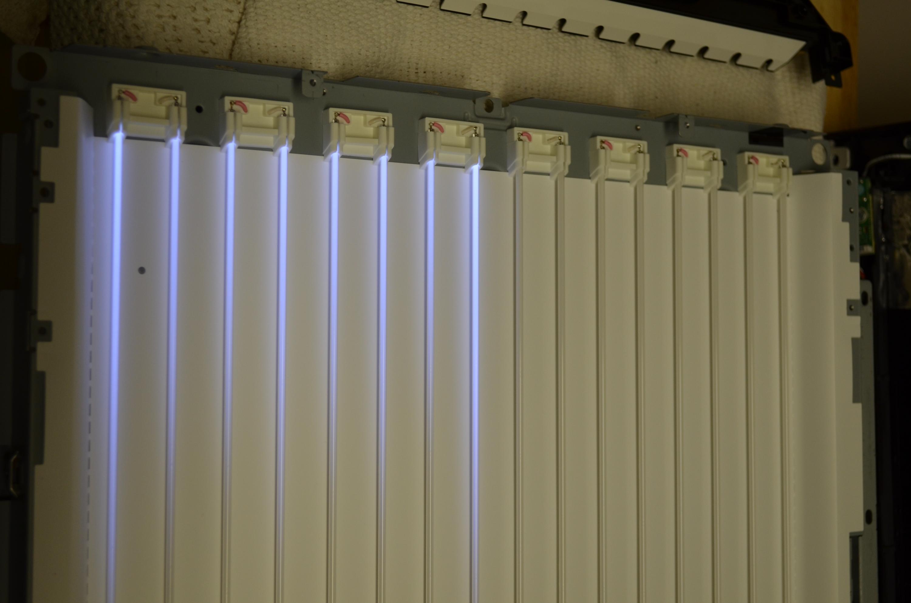 When looking inside the panel with the lights on, it seemed like two or so light halfway. I'll work on getting some more images of behind the lcd panel today. I was also thinking maybe a shortage of power. The 24 volts might be good but at what wattage or current draw. .not sure i have the instruments to measure that.