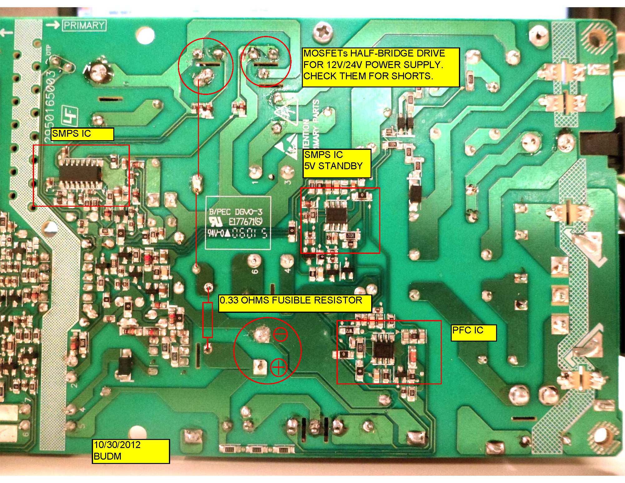 With the momentum of getting an LCD fixed for a friend, I decided to try another LCD. This one I picked up for myself from an e-waste place for $30. I plugged in the wall and I heard a small crack and that was it, standby led was off.