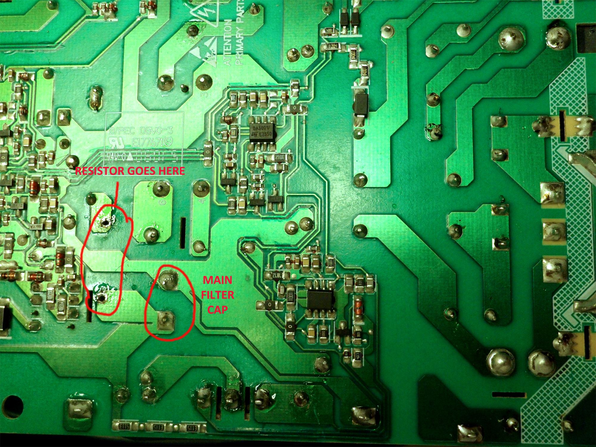 I plugged everything back and powered it up. The standby led was on steady, I heard that hissing noise as it was trying to come on and then a loud cracking noise, standby led immediately gone on blinking mode.