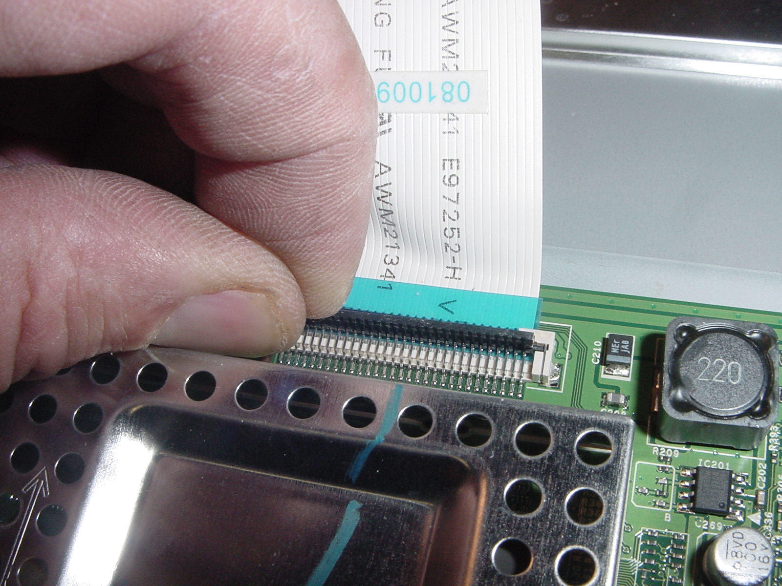 Download the service manual from ELEKTROTAYA and start checking the voltage on the 5V standby switching power supply section. U201 has the 13v input on pin 8 but I have no output on C221. I suspect bad IC but decide to do some resistance checking first since it has many MLLC (Multi Layer Ceramic Cap) around the circuits. The resistance reading on pin 7 was 2.3K which seems to be way too low since it has 30K (R216) and C212 (0.22uf 25v) to ground. I remove the C212 and check the resistance again, now it read around 30K. Check the leakage resistance of C212, it shows 2.4K.