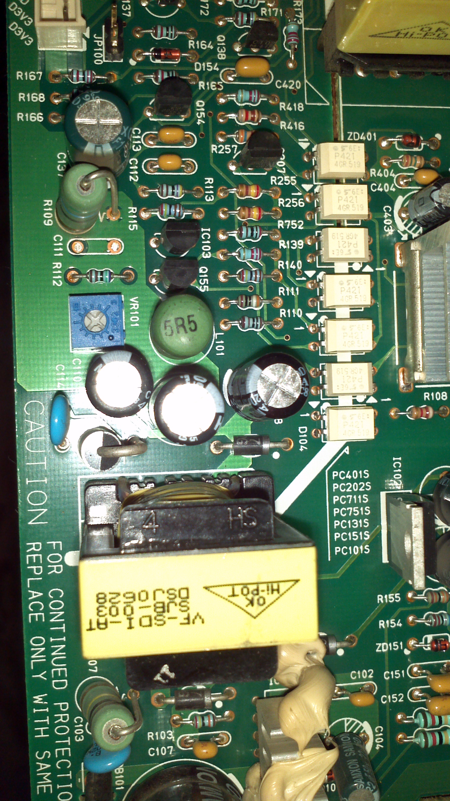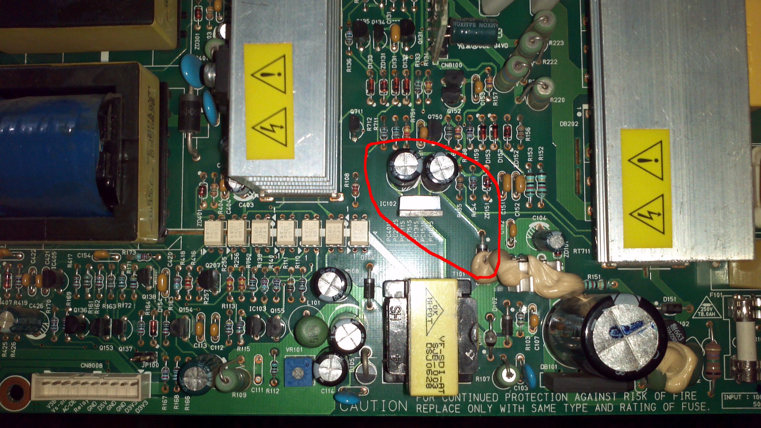 The close up is the spot I have to heat. Two of the three caps in the row where bad . I changed all three. I can turn it on and push the menu button then put heat on it and the screen will come on. I've searched the hairdryer and startup cap threads. But I'm not sure where to find the startup caps. Thanks