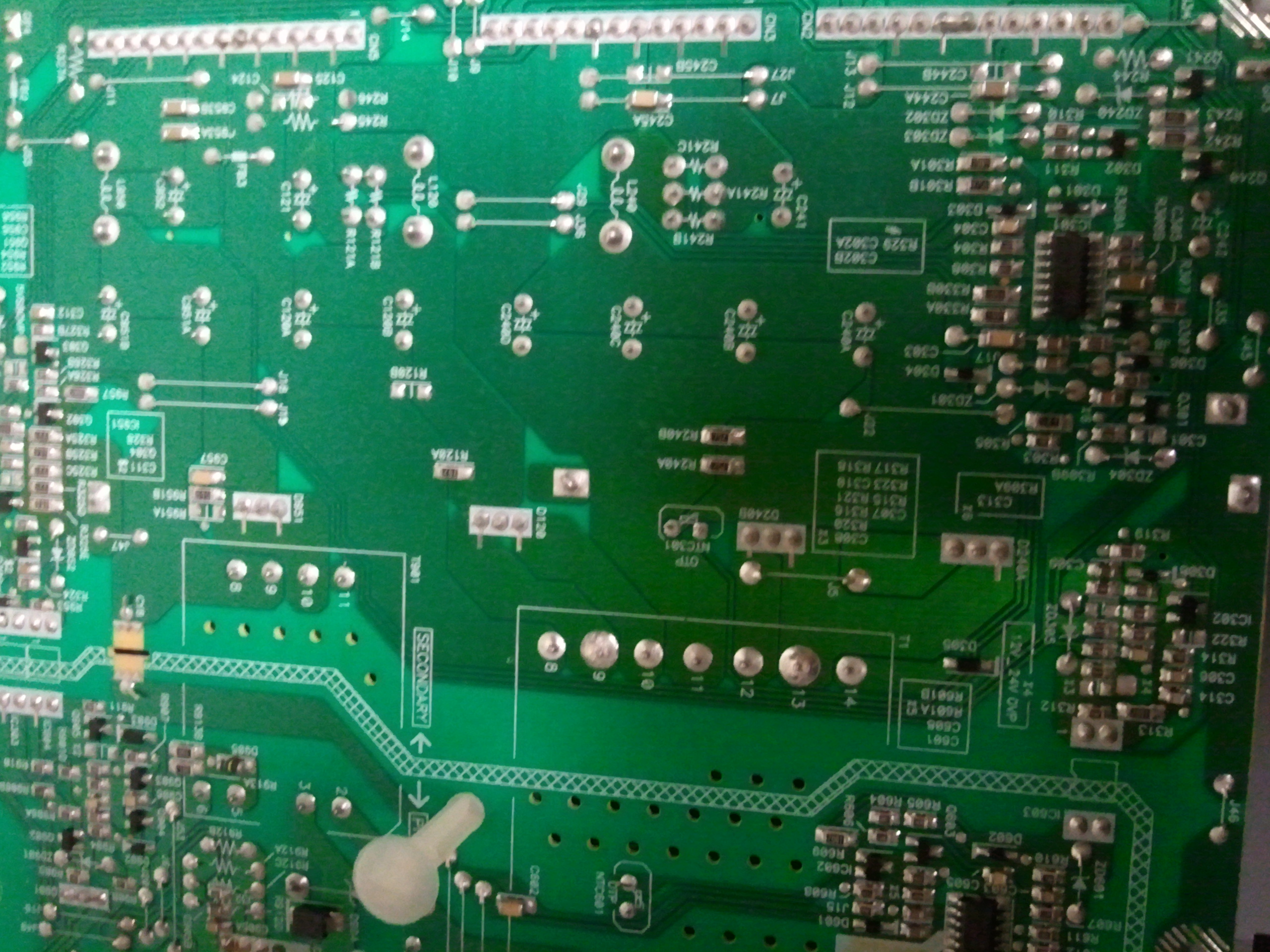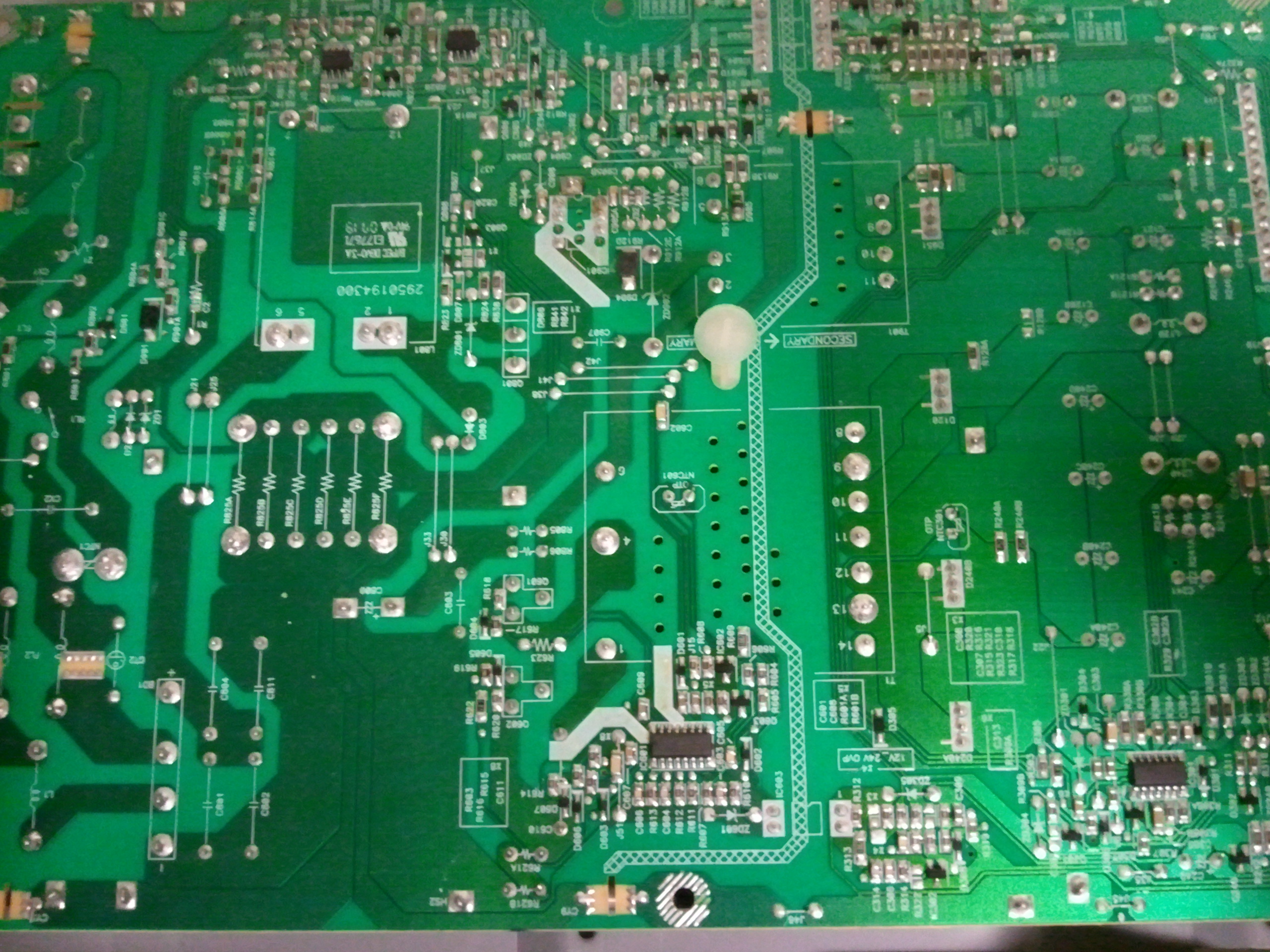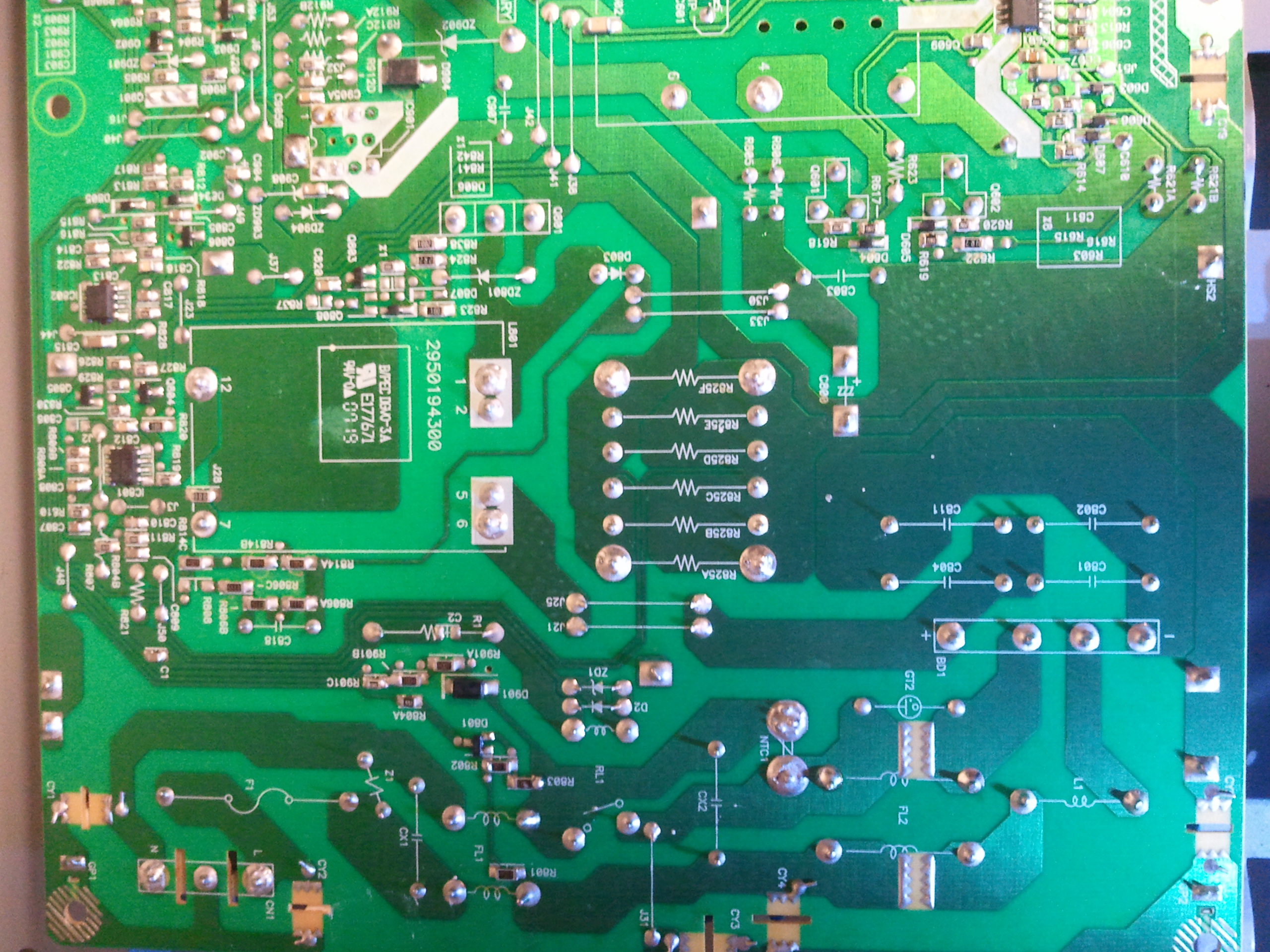 there 3.5.. funny i removed the ribbon cable to check then they were 3.0 then i put the cable back they were still 3.0 hopefully i am using the multimeter correctly. no change when i turen the tv off & on. better pictures of mainboard. is the powerboard ac and mainboard dc?